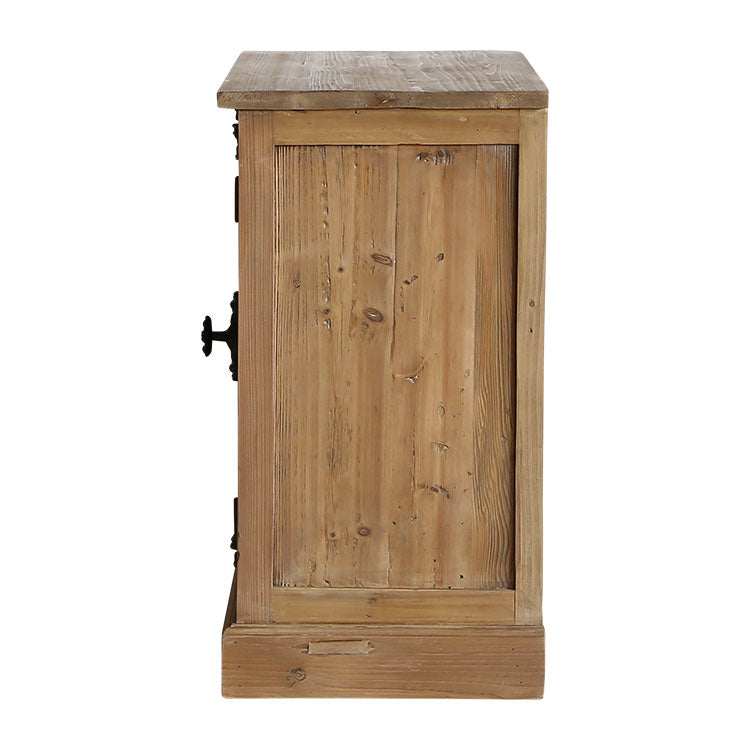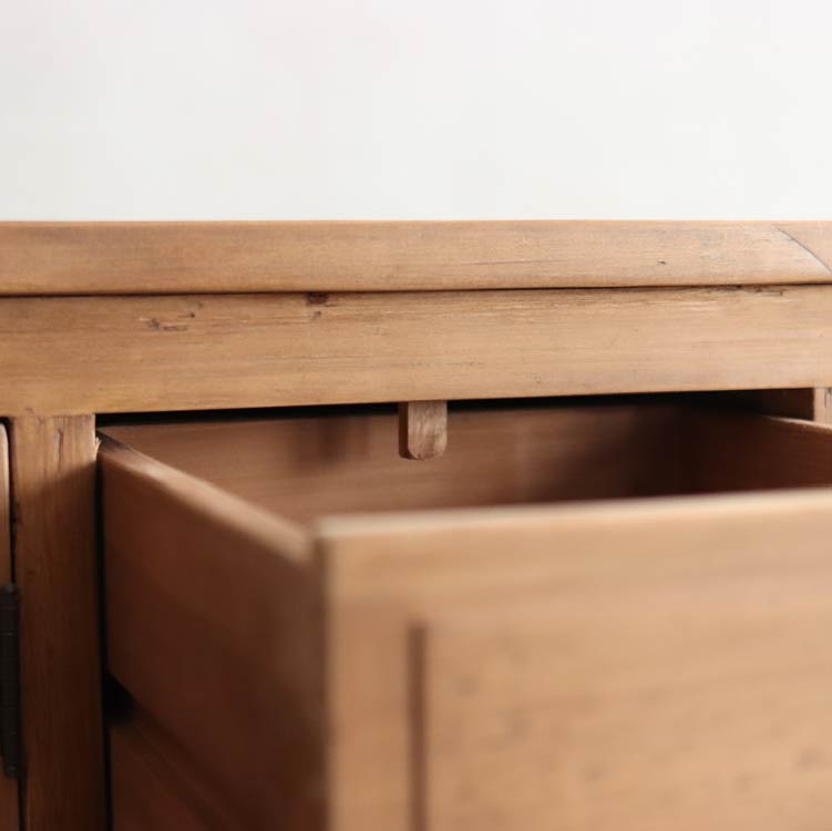 | 商品情報 | グレモン錠を使ったノスタルジックな雰囲気のサイドチェスト。趣きのある空 間を演出します。使用している古材は、独特の風合いを残すため、色ムラ や釘跡、傷等を味わいとして残しています。同じものは一つとしてない、古 材の個性をお楽しみください。 |