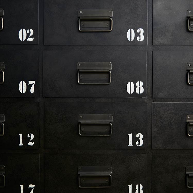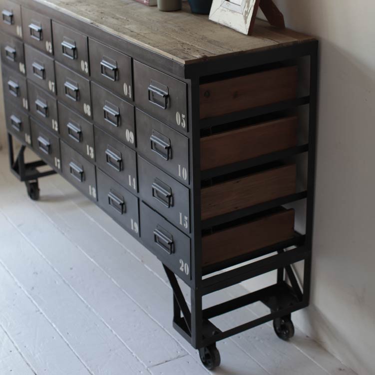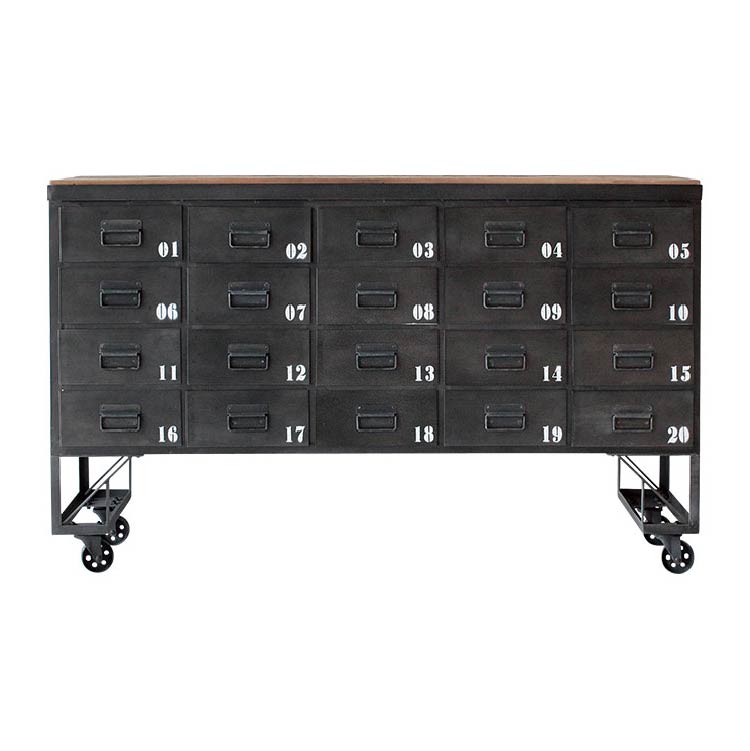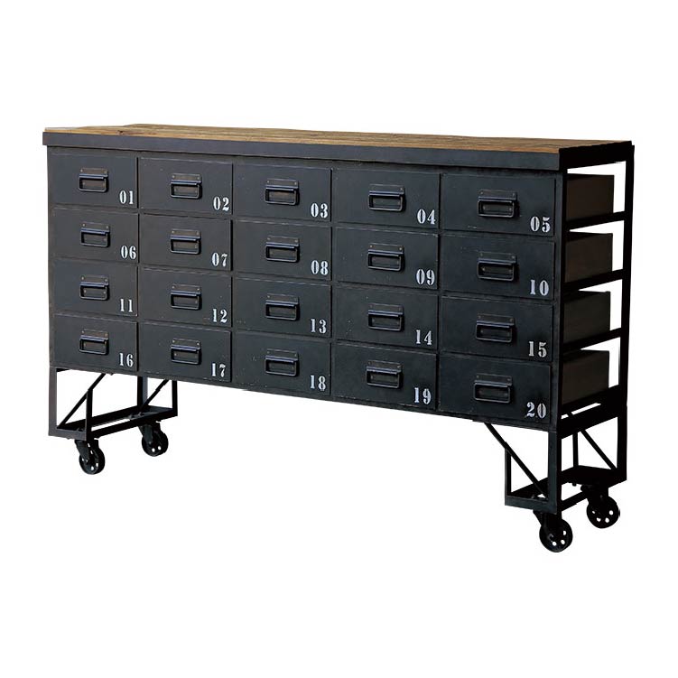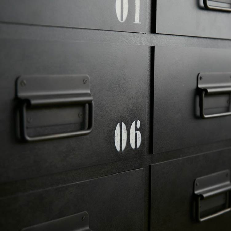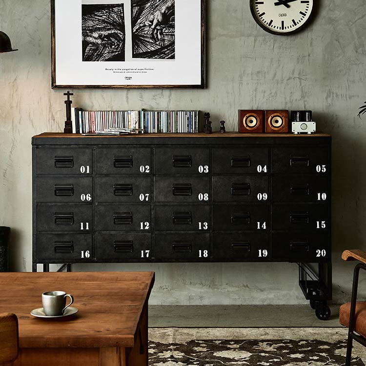 商品情報 引出しに施されたナンバーが目を引くチェストです。古木とスチールの雰囲気が合わさって、よりヴィンテージライクな仕上がりになりました。