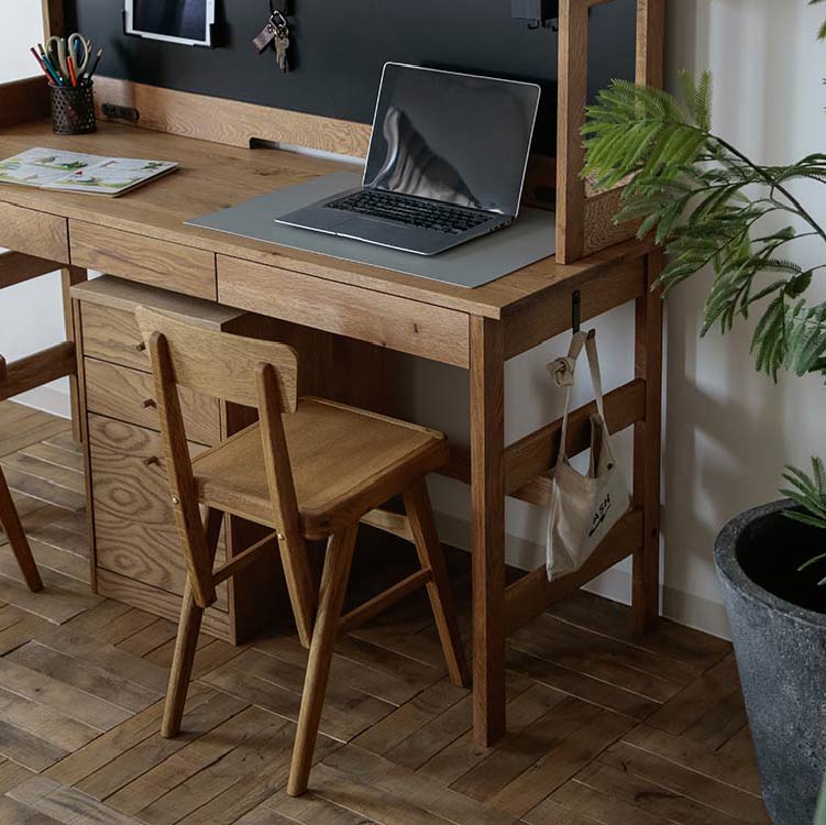 表面に硬い塗膜をつくるウレタン塗装とは違い、より無垢の状態に近い木の質感や手触り・風合いを残すことができ、経年変化も楽しめる仕上げです。