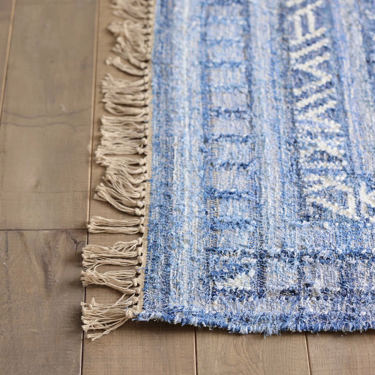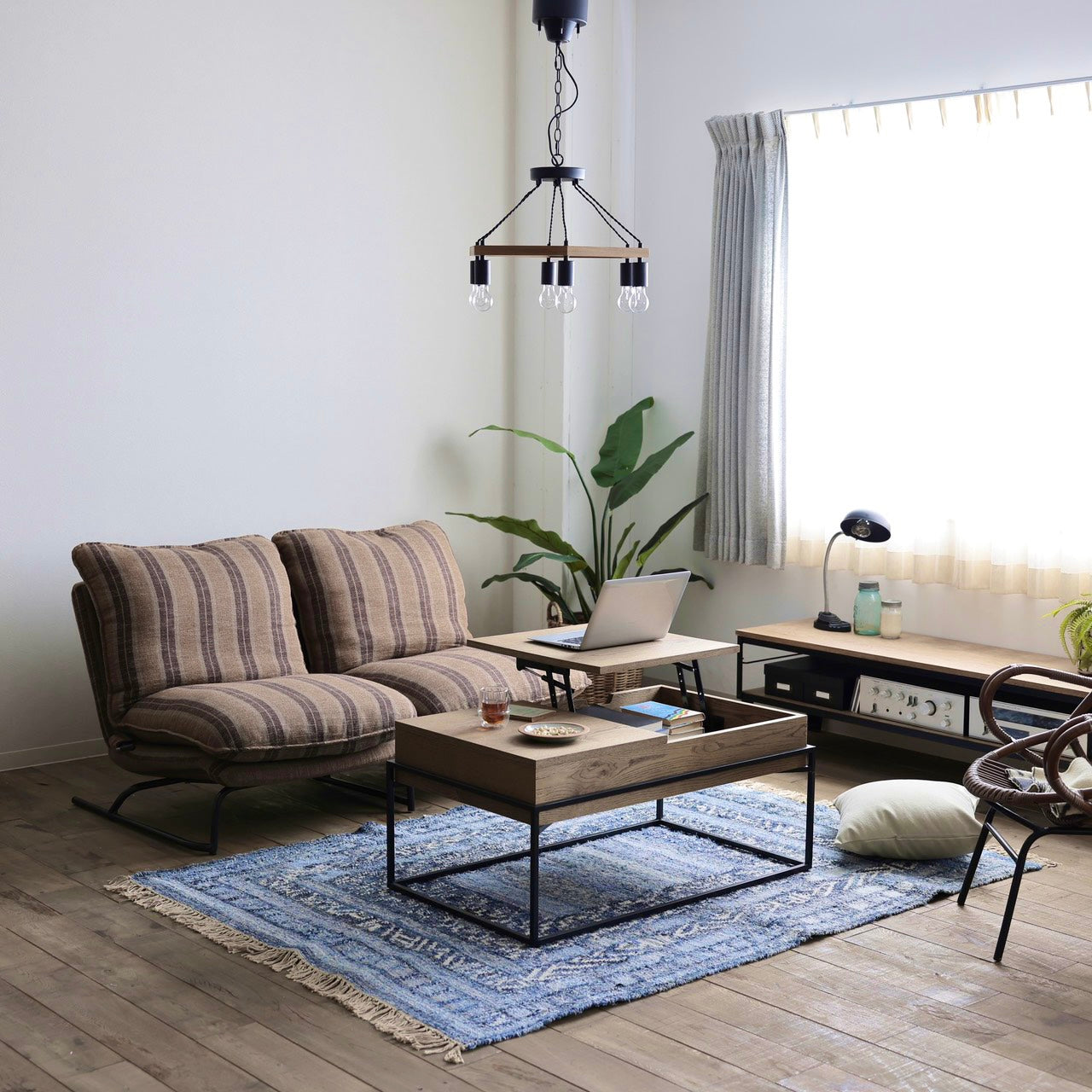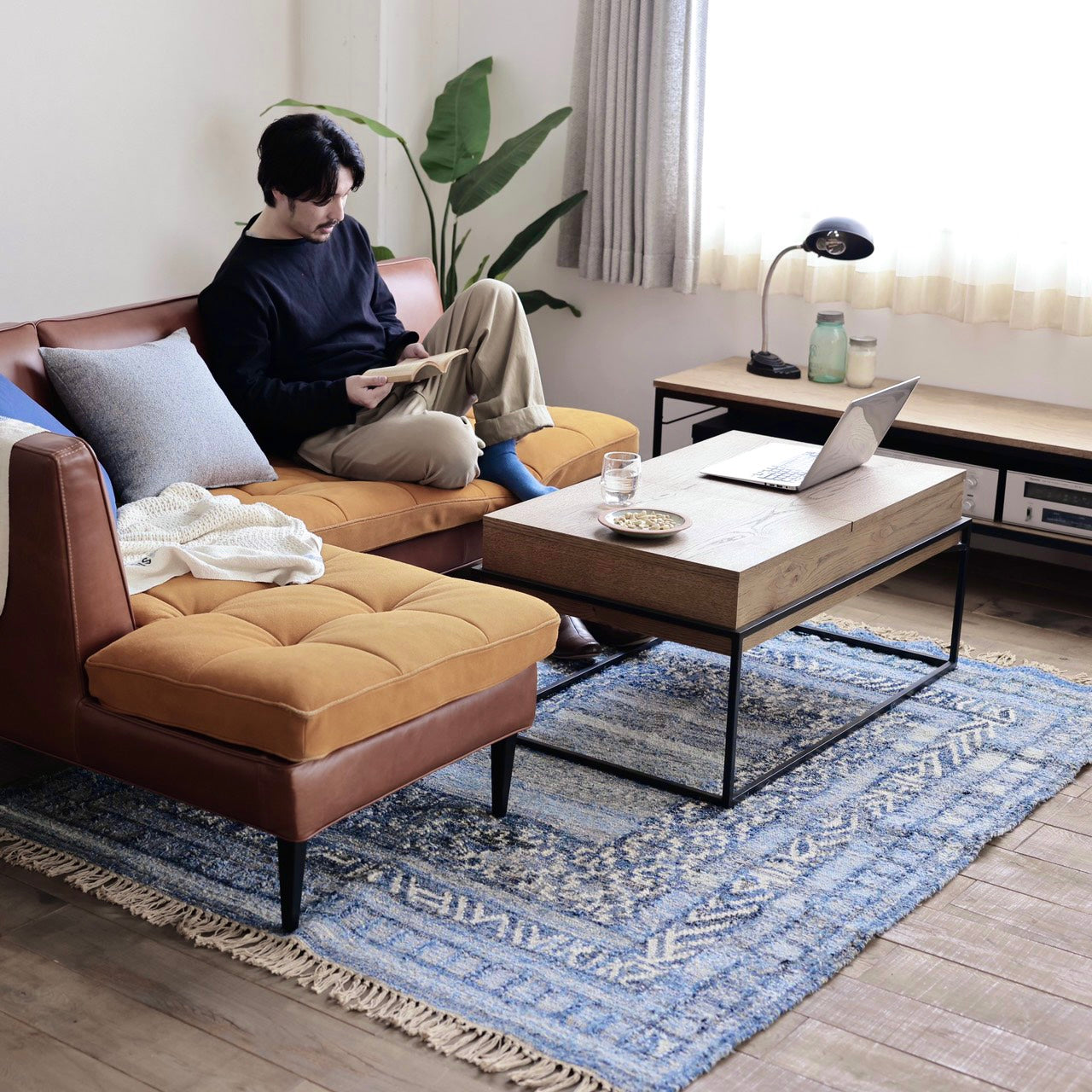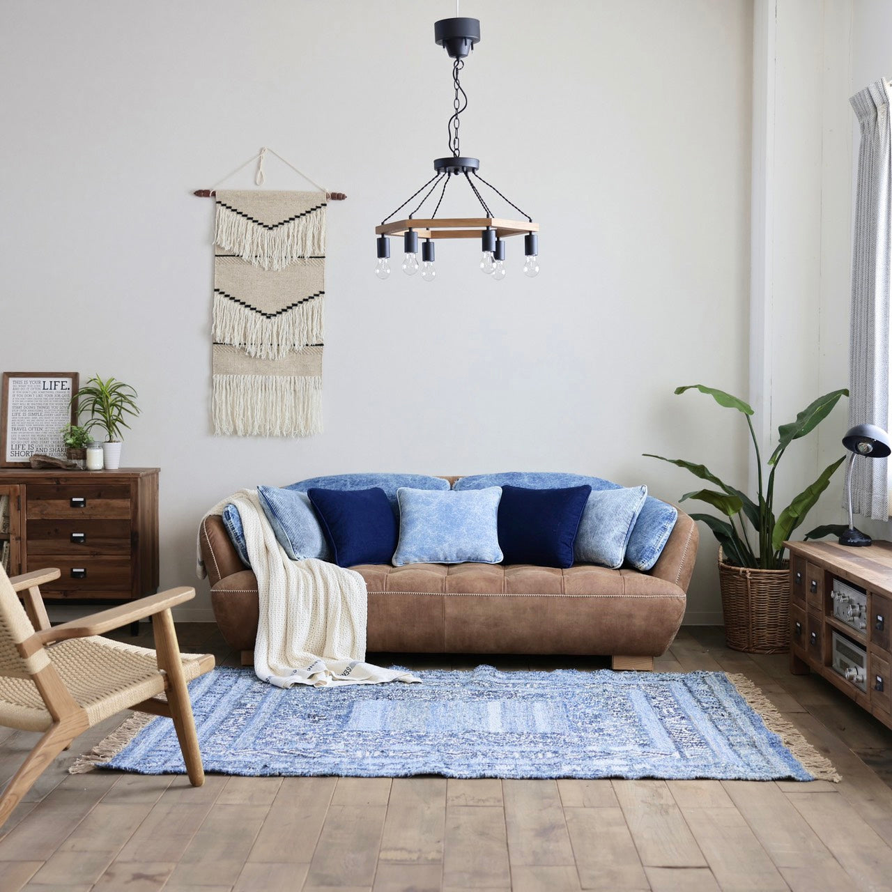 商品情報 | デニムのハギレを糸のようにして手織りで一枚一枚織り上げました。ユーズドデニムならではの濃淡のカラーリングをメインにさりげなくウール糸で模様を施しました。伝統的なキリム柄と相反するデニムというラフな素材の組み合わせがユニークで独特の魅力をもつラグです。 |