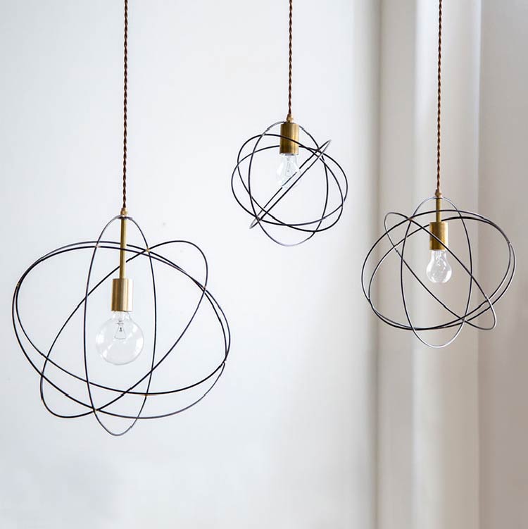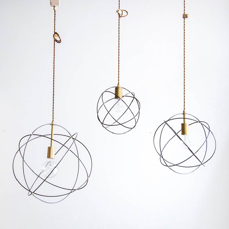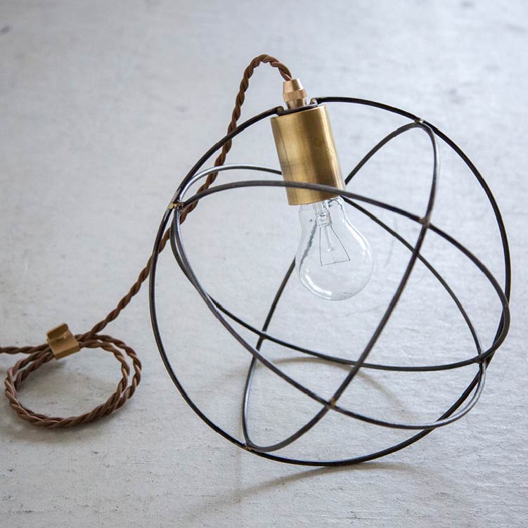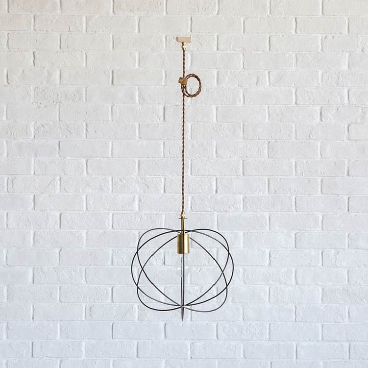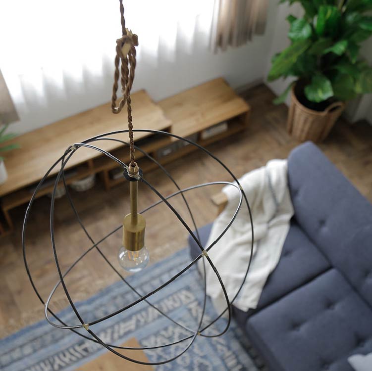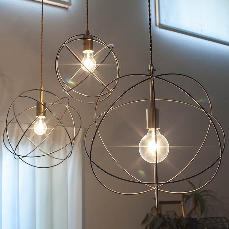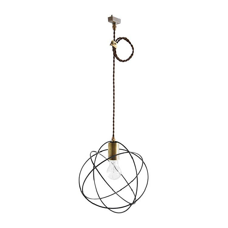 商品情報 | スチールワイヤーで形づくられた球状の輪郭が柔らかい陰 影を落とします。真鍮のソケットや留め金具が、さりげなくモ ダンな雰囲気を醸し出します。 |