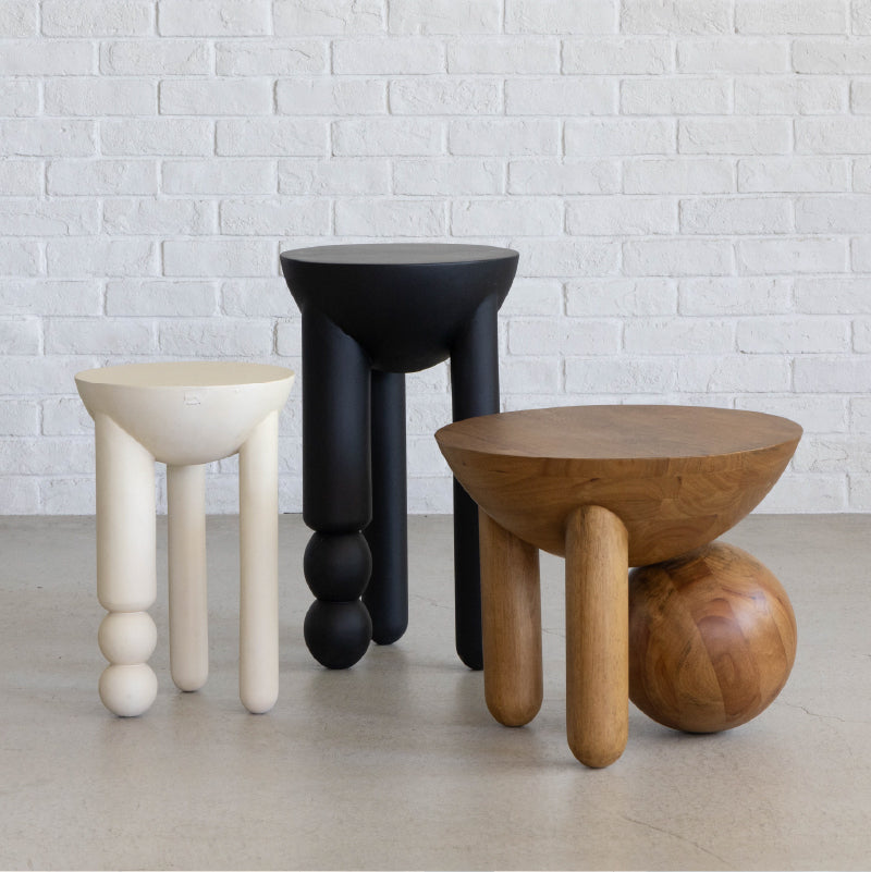 | 商品情報 | ラバーウッドの深い木色を活かしたロータイプ、アイボリーのスリムな形状のミドルタイプ、ブラックで高さのあるハイタイプの3種類をラインナップ。単色でシンプルなデザインながらも、目を惹く確かな存在感が空間をおしゃれに彩ります。個性的で他にはないスタイリッシュなデザインが、モダンスタイルやラグジュアリースタイルなどの空間にマッチします。 |
