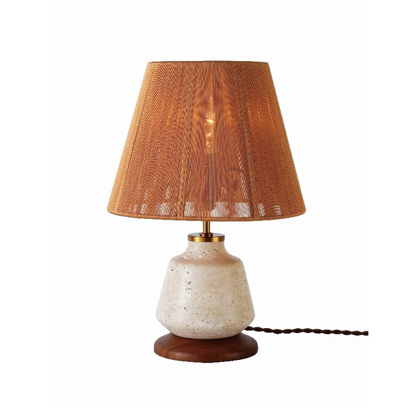 商品情報 天然大理石トラバーチンに繊細なストリングスセードを組み合わせたテーブルライト。 シェードは光沢のあるブラウンの紐を巻きつけて形成しています。 隙間から漏れるやわらかな明かりと周りに広がる影模様がうつくしく、洗練された雰囲気に。 LED電球:対応可 点灯:ロータリースイッチ コード長:210cm