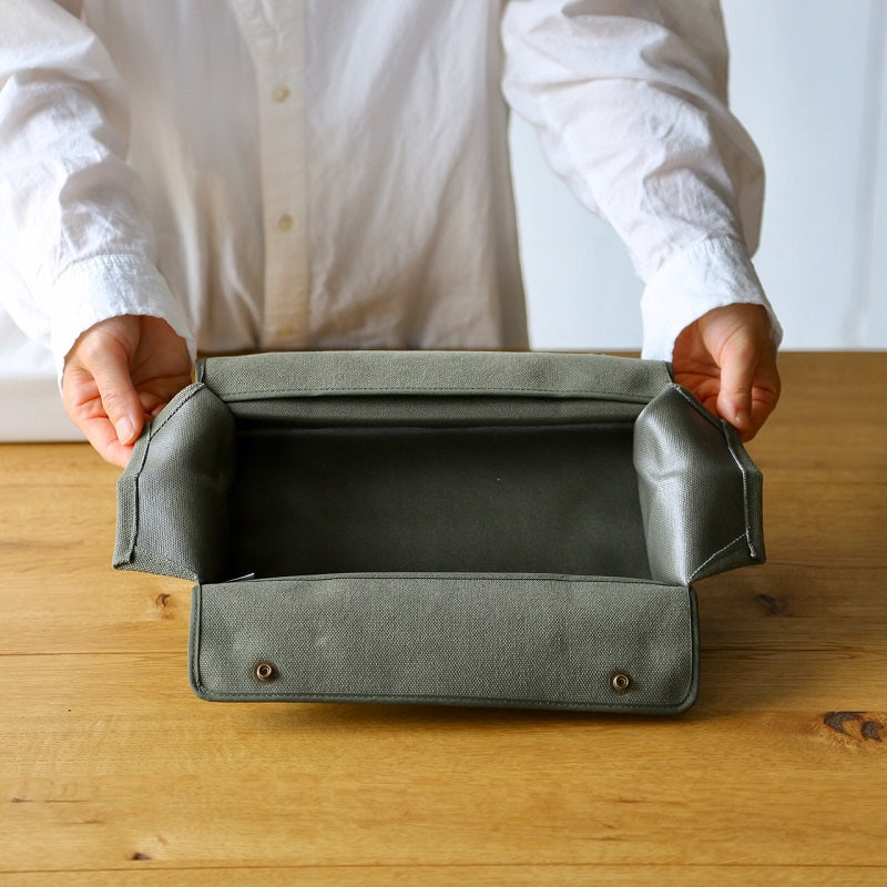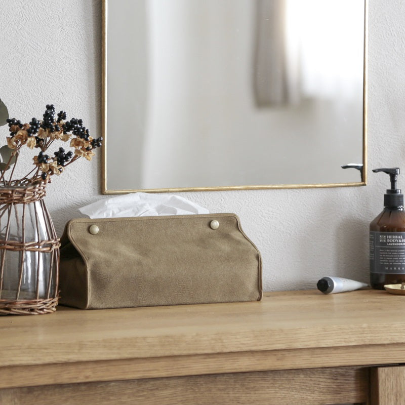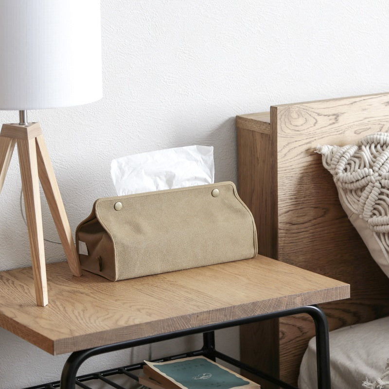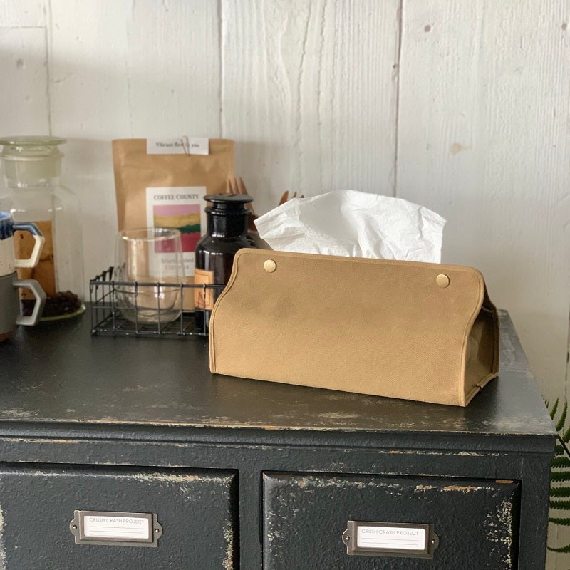 商品情報 | バイオウォッシュ加工によってヴィンテージテイストに仕上げた国産の8号綿帆布を使用したティッシュケース。 |