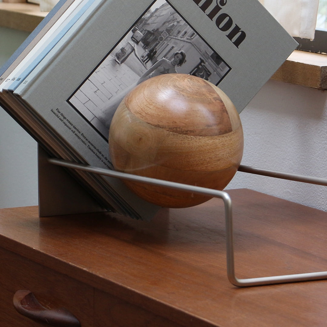 商品情報 | スロープを木製ボールがゆっくり動き本やレコードなどを抑えてくれるブックエンド。 |