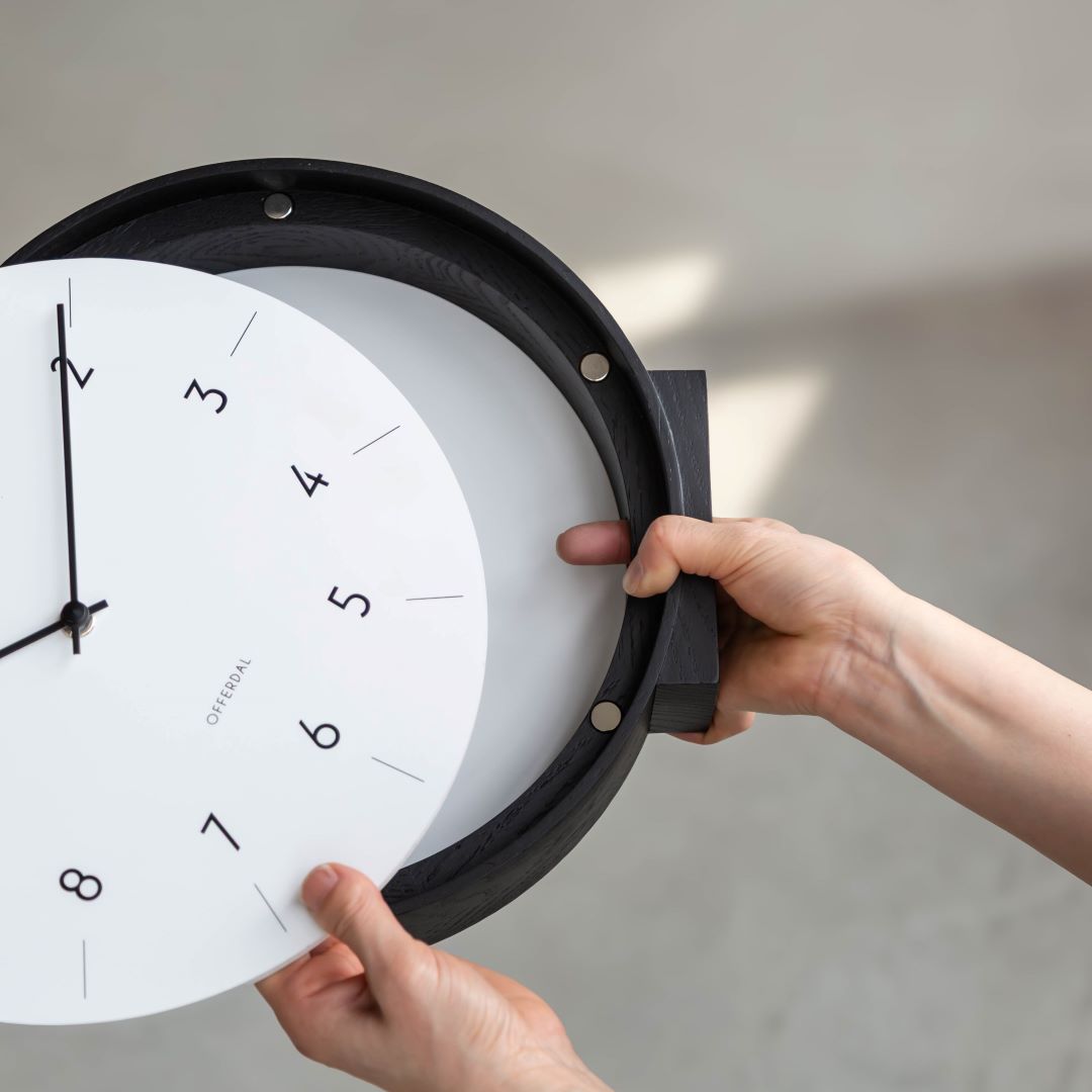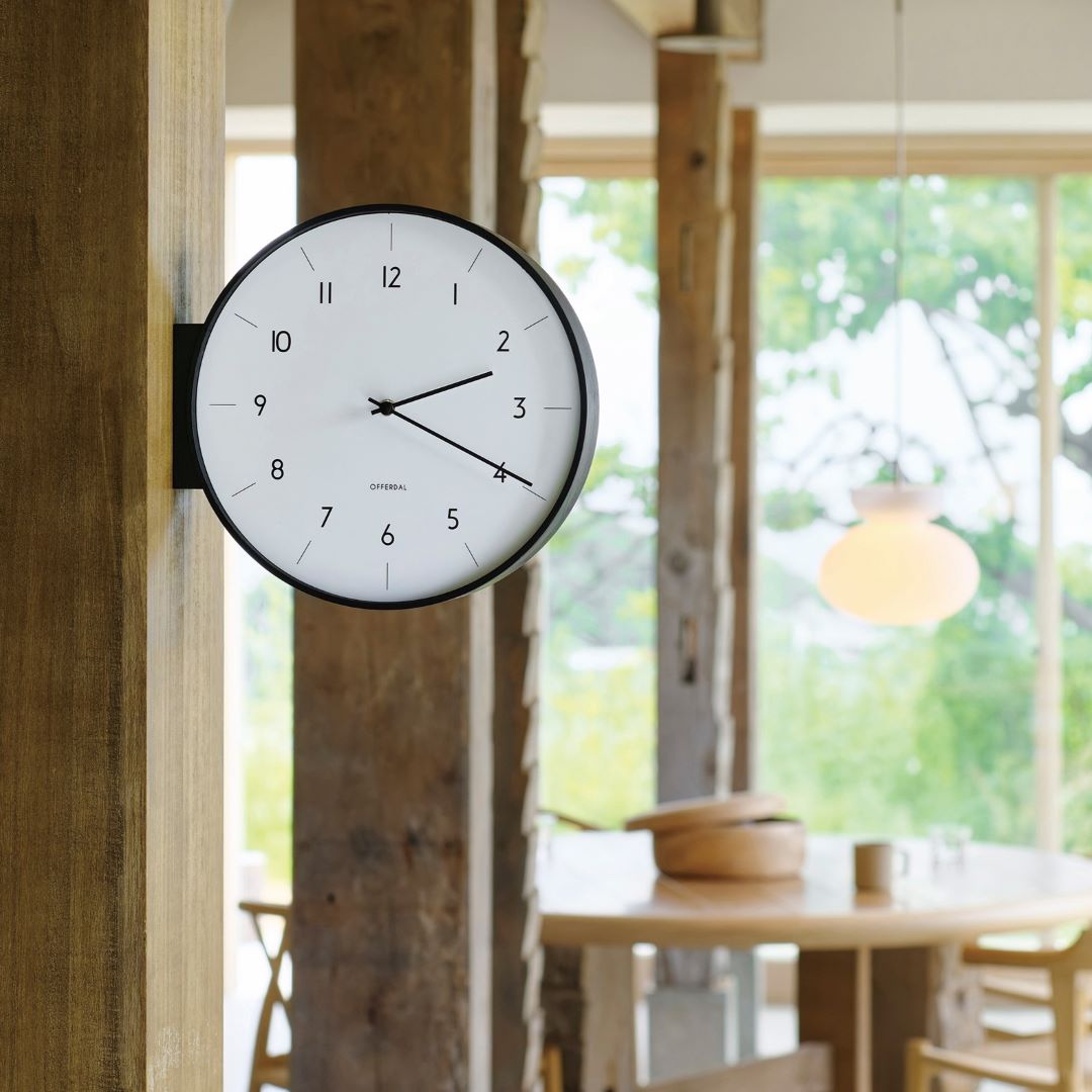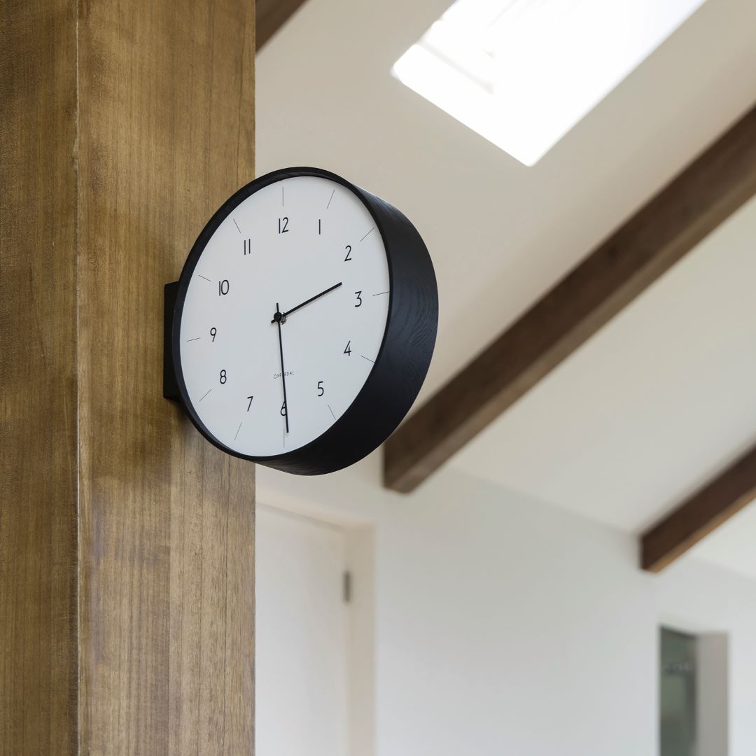 | 商品情報 | 天然木を使用したウッドフレームの両面時計。より幅広いインテリアに馴染みやすく、使い勝手の良いデザインに仕上がっています。 |