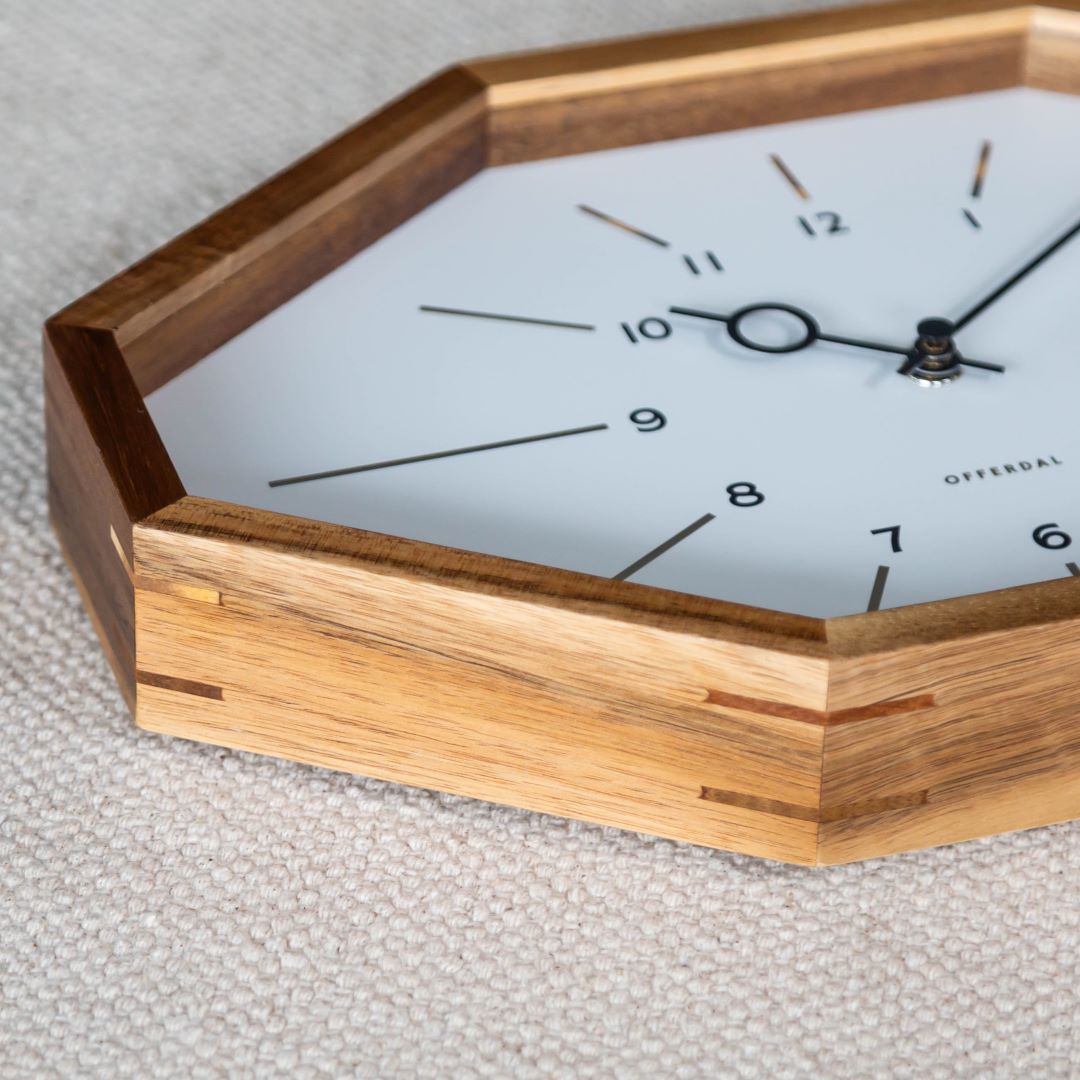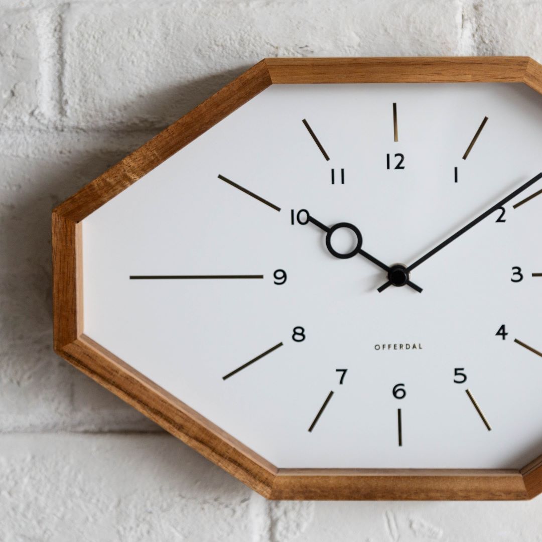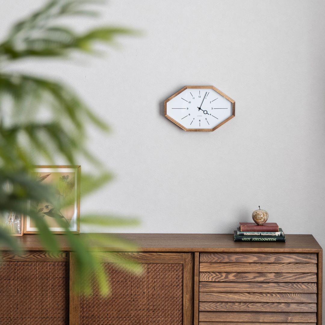| 商品情報 | 横に長い8角形のフォルムがレトロな趣を感じさせるウォールクロック。 シンプルにまとめた文字盤にゴールドパーツを忍ばせた、遊び心と高級感が共存したデザインです。 |
