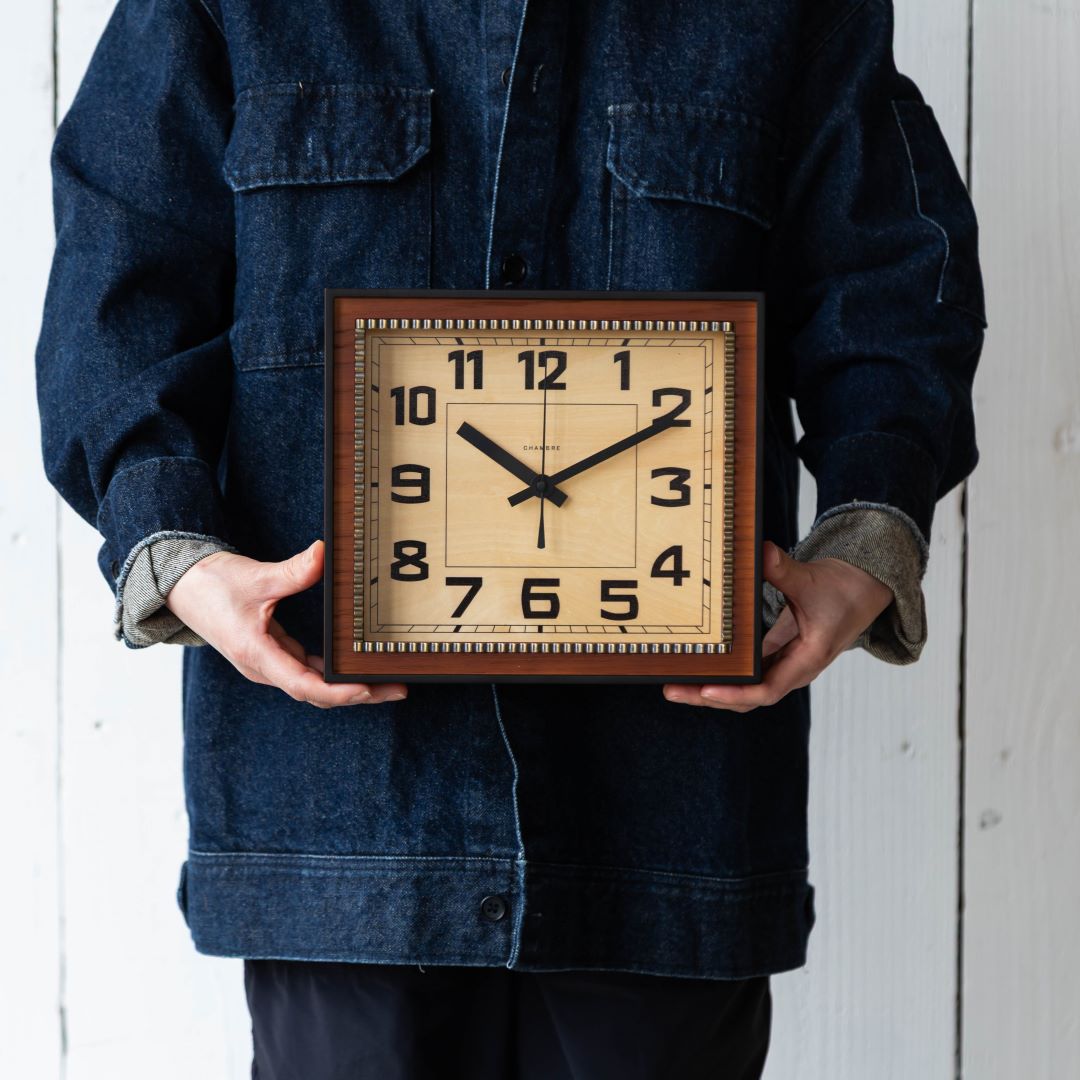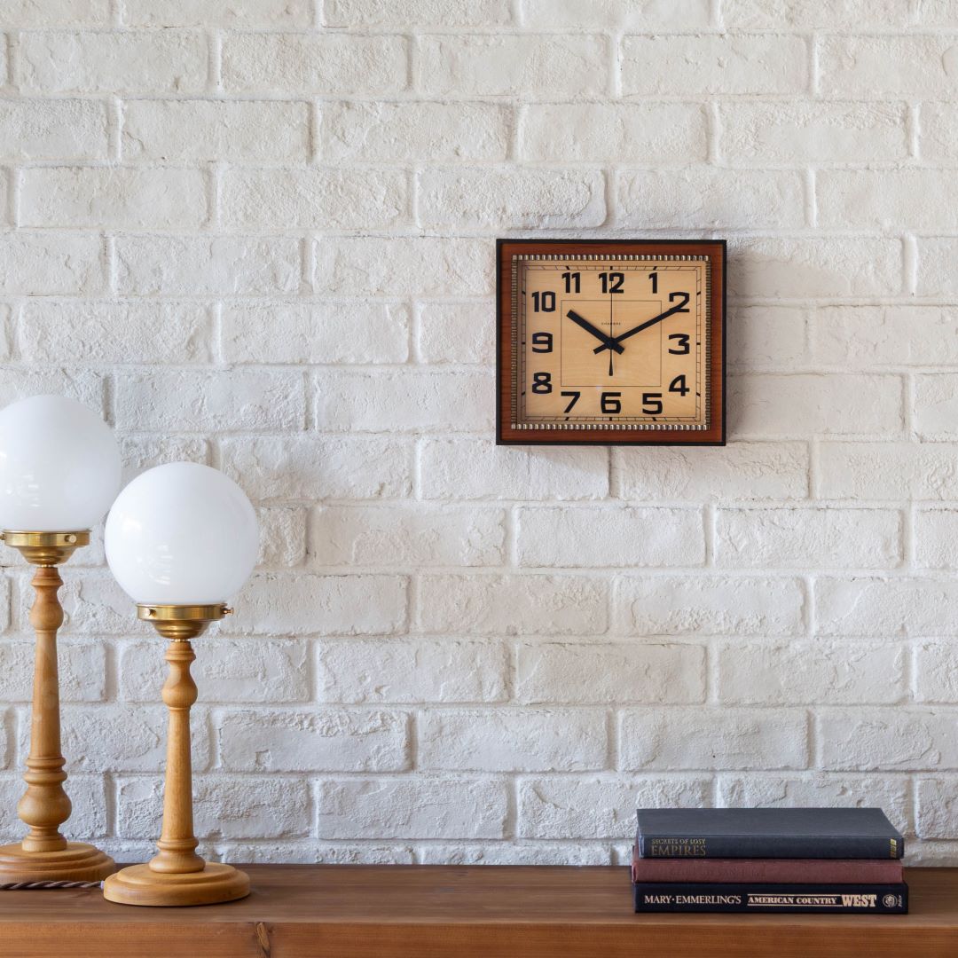 | 商品情報 | 昭和初期の角型グレシャム時計をモチーフにした掛け置き兼用のスクエアクロック。 ※「グレシャム」とは機械の入った四角い箱を時計の枠の後ろに背負ったタイプの時計の総称 /単三電池×1本 /仕様:スイープムーブメント |