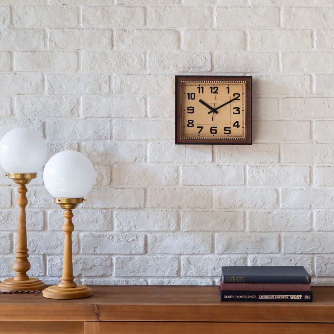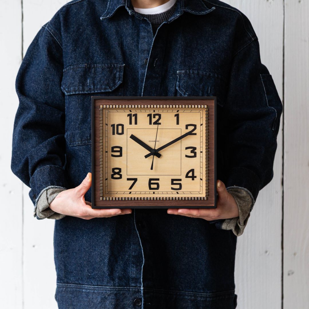| 商品情報 | 昭和初期の角型グレシャム時計をモチーフにした掛け置き兼用のスクエアクロック。 ※「グレシャム」とは機械の入った四角い箱を時計の枠の後ろに背負ったタイプの時計の総称 /単三電池×1本 /仕様:スイープムーブメント |