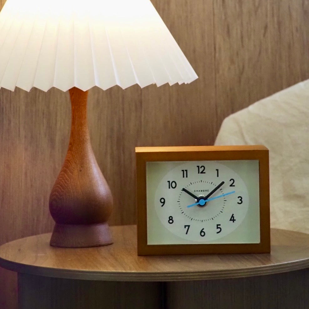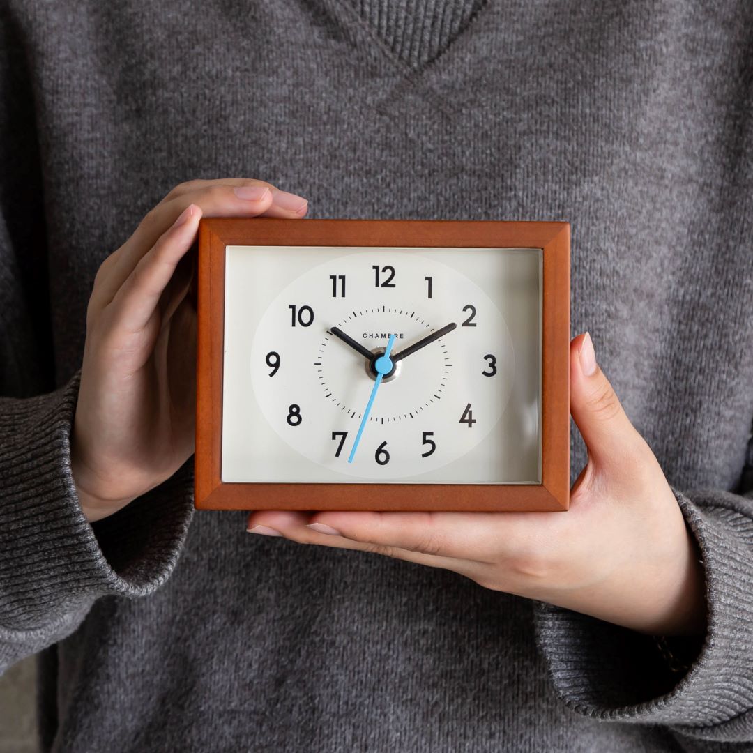 | 商品情報 | 木枠にひのき無垢材を使用したレトロモダンな置き時計。シンプルながら細部にこだわりが詰まっています。 |