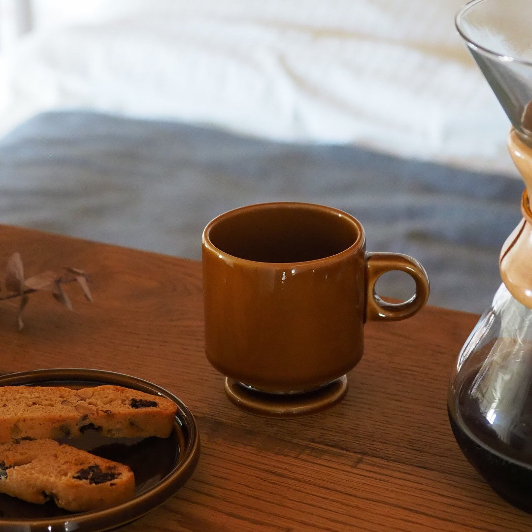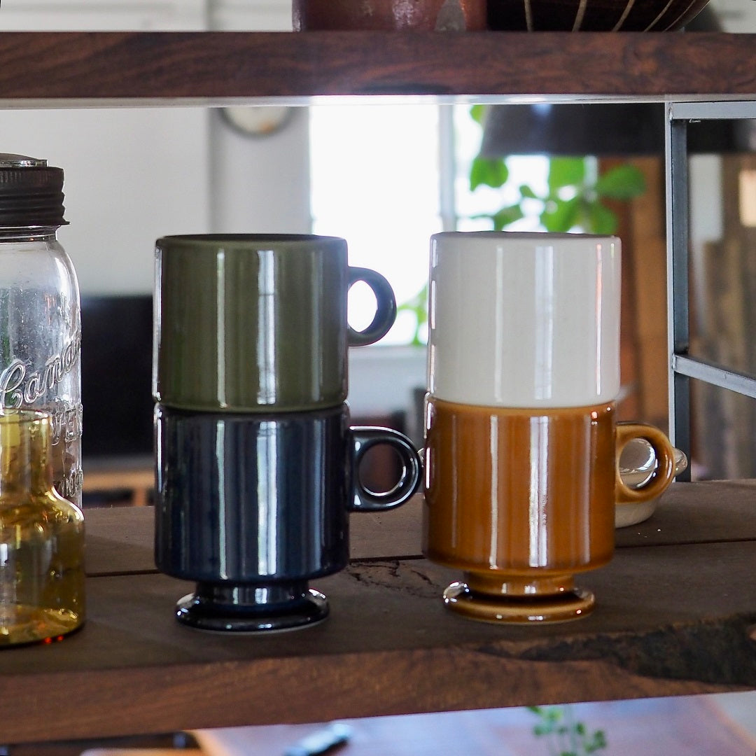 | 商品情報 | レトロでノスタルジックな脚付きマグ。見た目の印象だけでなく、どっしりした安定感と、重ねて収納できる機能性も魅力です。 |