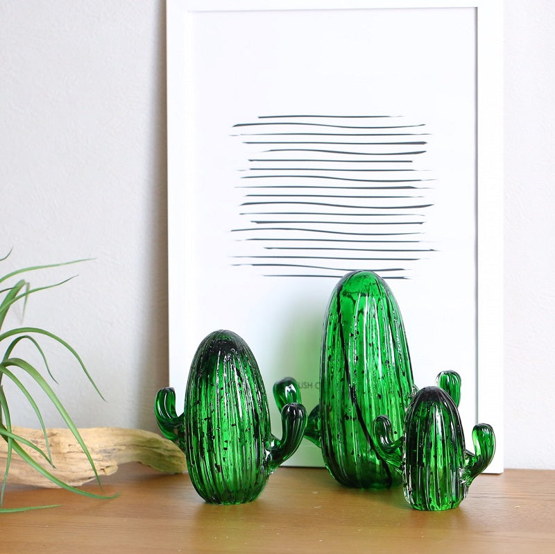 | 商品情報 | サボテンの形をしたハンドメイド仕上げのガラスの置物。愛らしくユーモア溢れる形状は玄関、リビング、寝室と様々なシチュエーションでインテリアのアクセントに。 |