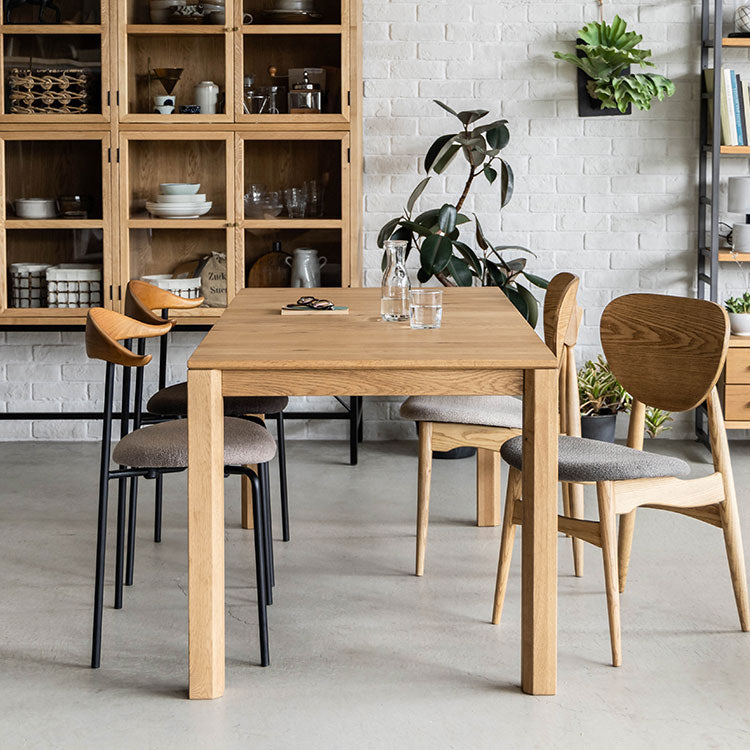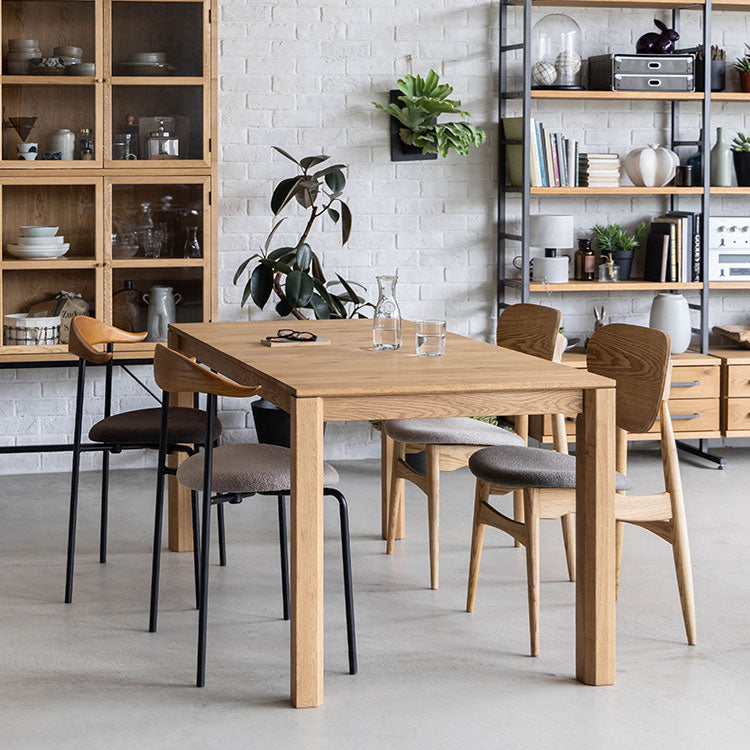 | 商品情報 | オーク材がもつナチュラルで温もりのある風合いを活かしたダイニングテーブル。 無駄を削ぎ落したシンプルなデザインは、 様々なテイストのチェアとも合わせやすくなっています。 |