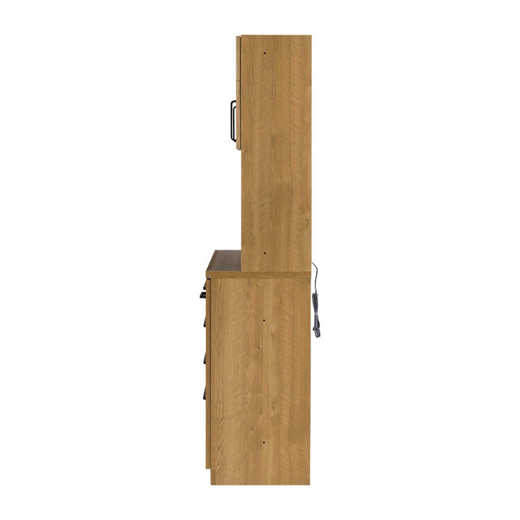 | 商品情報 | 家電が置ける作業スペースやマグネット対応バックボード、フルスライドレールの引出しなど、キッチンに求められる機能を盛り込んだダイニングボードです。必要な用途やスペースに応じて、アイテムを追加・連結できるユニットシステムを採用しています。木の自然な風合いが感じられるオーク材のナチュラルな雰囲気に、ヴィンテージ仕上げのスチールパーツやデザインガラスをあしらい、こだわりのデザインに仕上げています。 |