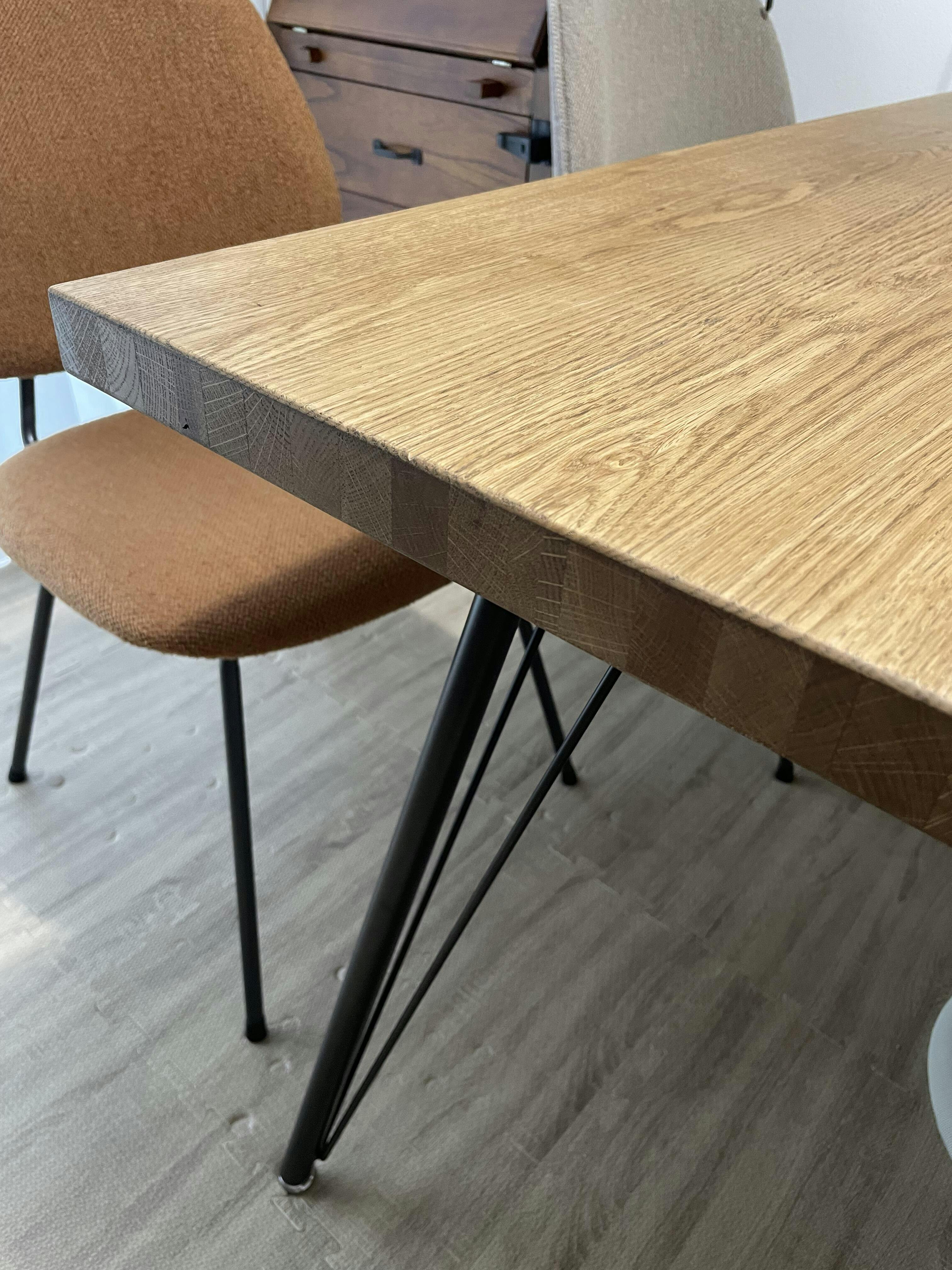 オイル塗装は水分・油分に弱く、長時間放置すると輪ジミやシミの原因になります。木材の表面に施した、無垢の風合いを活かした仕上げです。