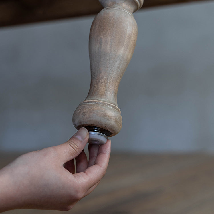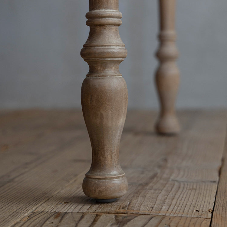 細部まで美しく削られた木脚は、優雅さを感じます。古材の優しい風合いと曲線が織りなす柔らかな雰囲気と相まって、懐かしくも温かみのある空間を演出してくれます。