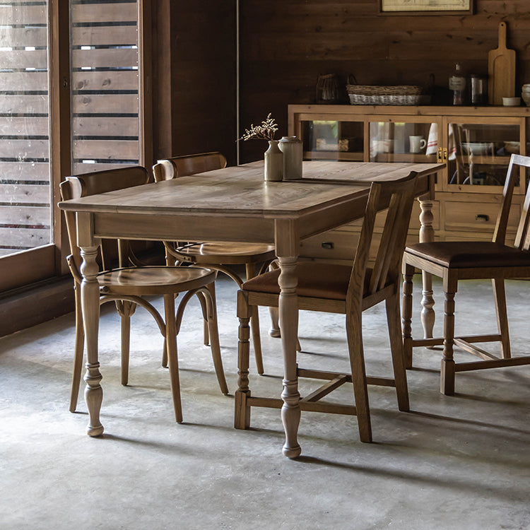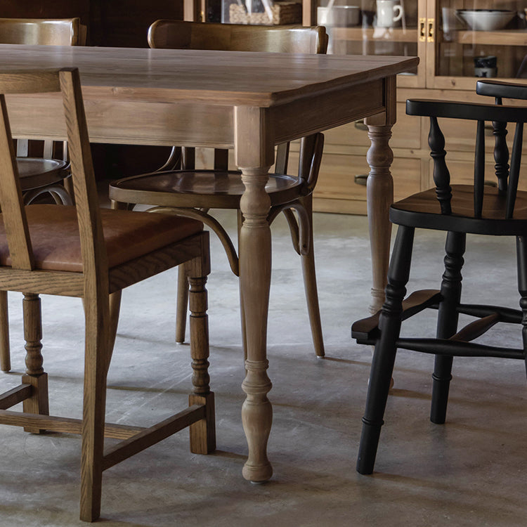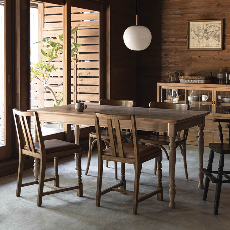 商品情報 クラシカルなろくろ脚のデザインが特徴のダイニングテーブルです。パイン古材の優しい風合いと曲線が織りなす柔らかな雰囲気が、どこか懐かしい温かみのある空間を演出します。 丸型と四角型の2タイプでの展開です。