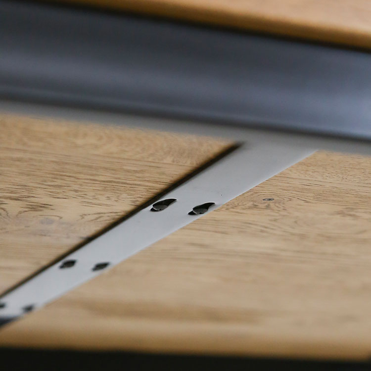 オイル塗装は水分・油分に弱く、長時間放置すると輪ジミやシミの原因になります。木材の表面に施した、無垢の風合いを活かした仕上げです。