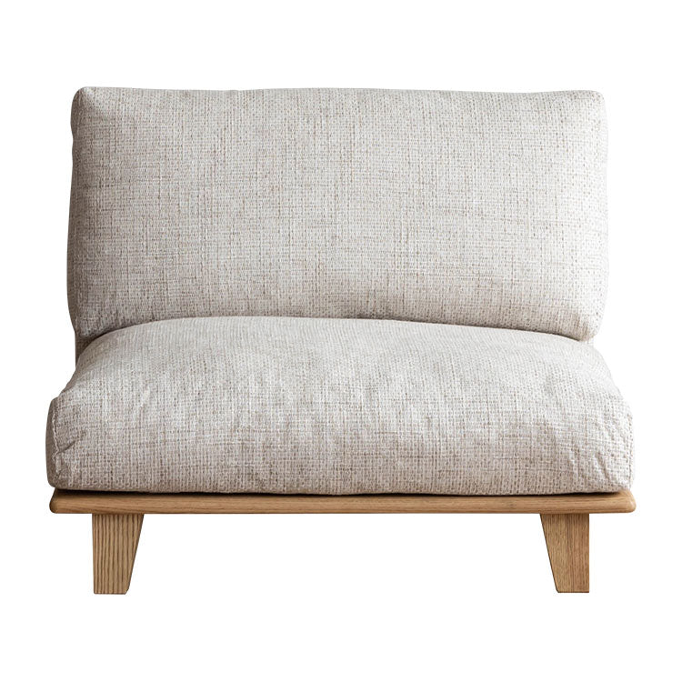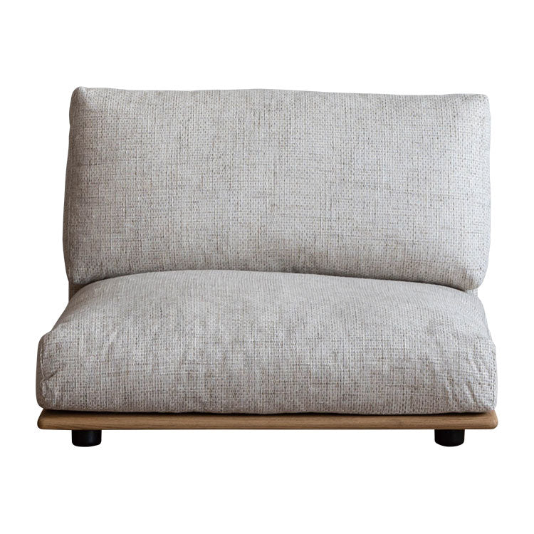 ソファの中央についている脚は、人が座った時に床に接地する構造で、 あくまで荷重がかかった時の補強用のものでございますので、浮いている状態が正常になります。