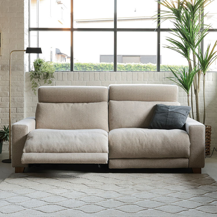| 商品情報 | 肘横のスイッチで座姿勢の切り替えができる電動リクライナーソファ。心地よく沈み込むフェザー入りクッションに全身をあずける、極上のリラックス感が味わえます。リクライナー特有の重厚すぎる存在感を払拭するスマートデザインで、スタイリッシュなコーディネートが叶います。 |