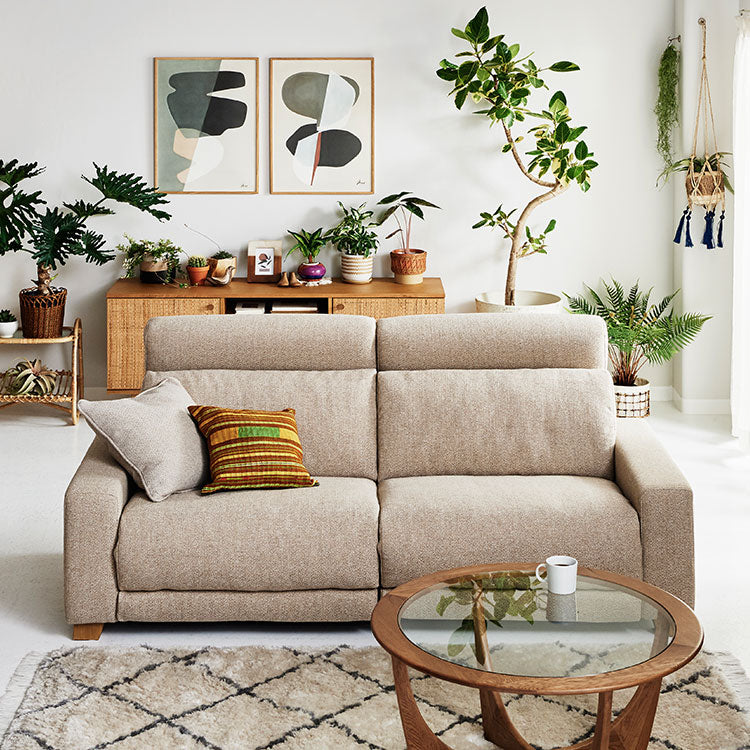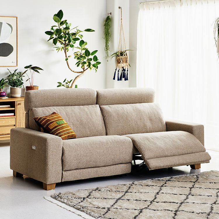 | 商品情報 | 肘横のスイッチで座姿勢の切り替えができる電動リクライナーソファ。心地よく沈み込むフェザー入りクッションに全身をあずける、極上のリラックス感が味わえます。リクライナー特有の重厚すぎる存在感を払拭するスマートデザインで、スタイリッシュなコーディネートが叶います。 |