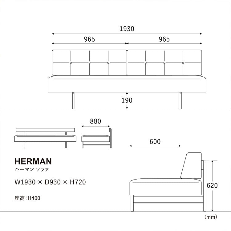ハーマンソファ 3人掛け スエード カリブー[tok]