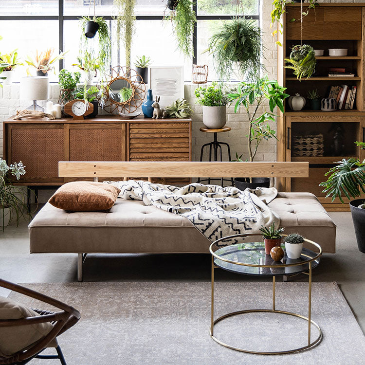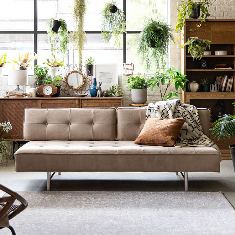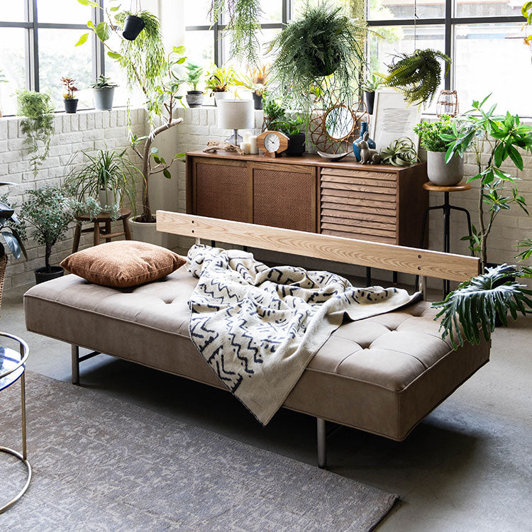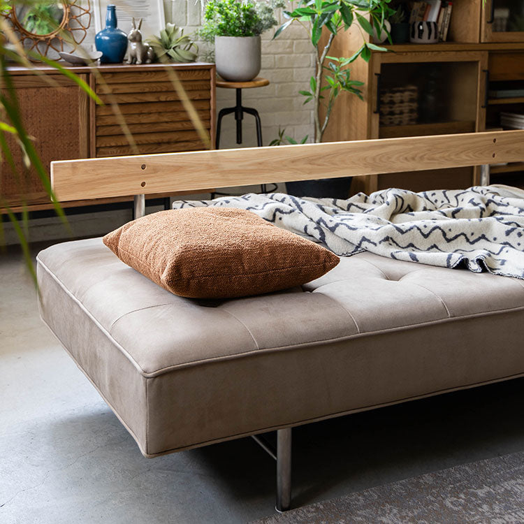 商品情報 直線的なファブリック×スチール×木の異素材の組み合わせによる、モダンで洗練された存在感のあるソファ。背クッションを外せばデイベッドとしてもゆったり使える、ワイドな座面設計が特徴です。ソファでお昼寝をされたい方や横になって過ごしたい方におすすめのソファです。