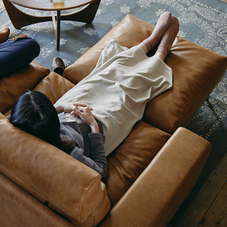 商品情報 贅沢にたっぷりとフェザーを使い、身体に馴染むようにくったりと沈み込む座り心地が特徴のソファ。 ヴィンテージソファのルーズな張り感をイメージした座面に、すっきりとしたブラックスチール脚のコントラストをきかせました。 ゆったりとした奥行きと、幅広で低めの肘置きがくつろぎの時間を演出します。