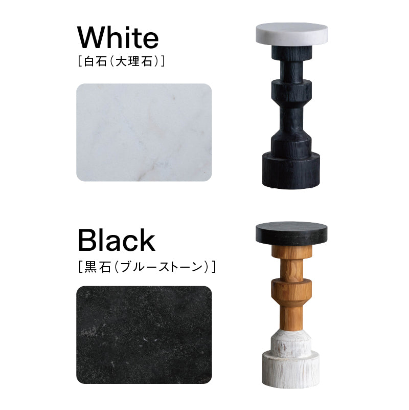 | 商品情報 | ブルーストーンと大理石で重厚感を演出し、チェスの駒のようなデザインが空間をおしゃれに彩ります。天然石と木の異素材の組み合わせが絶妙にマッチしながらも、目を惹く確かな存在感を醸し出します。ブラック×木色、ホワイト×ブラックの2色をラインナップ。インテリアとして飾れば、洗練された上質なモダンスタイルを演出します。 |