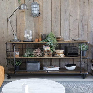 木とスチールという異なる質感の素材を組み合わせたシンプルなオープンシェルフ。