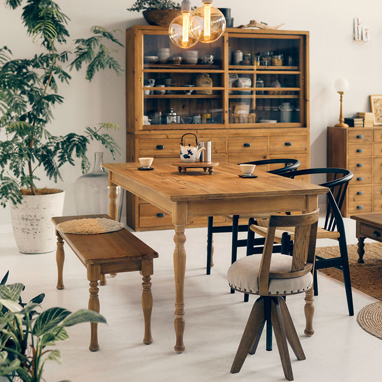 | 商品情報 | クラシカルなろくろ脚のデザインが特徴のキリンシリーズにベンチが追加。パイン古材の優しい風合いと曲線が織りなす柔らかな雰囲気が、どこか懐かしい温かみのある空間を演出します。 古材の使用している古材は、独特の風合いを残すため、色ムラや釘跡、傷等を味わいとして残しています。 同じものは一つとしてない、古材の個性をお楽しみください。 |