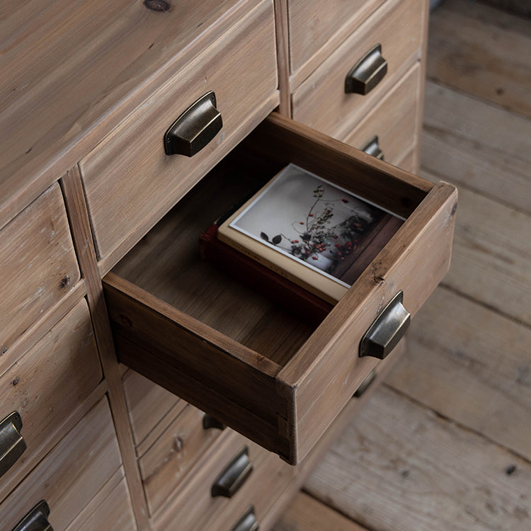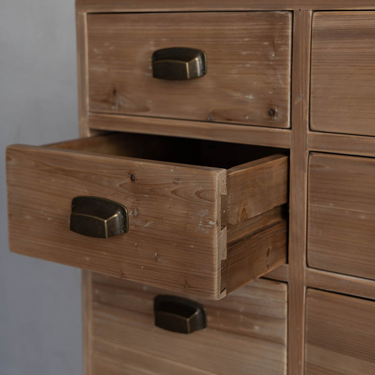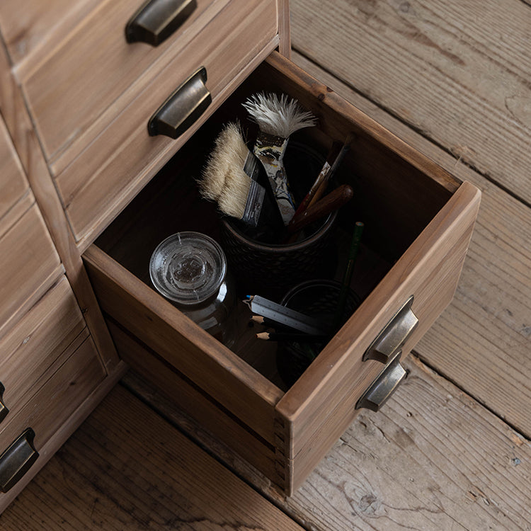 | 商品情報 | 薬棚をモチーフにしたキャビネットです。お部屋の整理整頓に役立つデザインです。天面はディスプレイスペースとしても使用できるので、照明やお気に入りの物を飾るなど自分らしい空間を楽しむことができます。 |