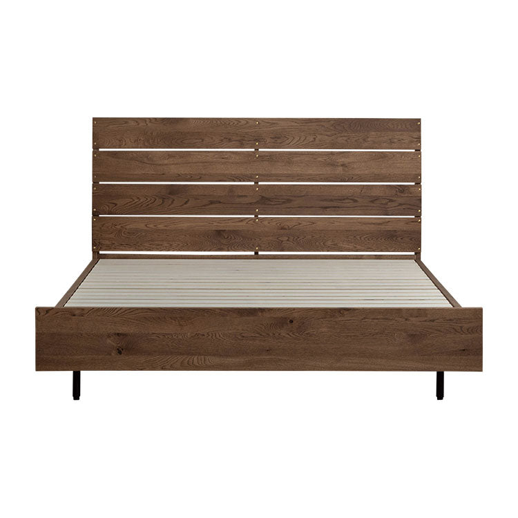 商品情報 | オーク材をオイルで仕上げることで木の豊かな表情や質感を活かし、温かみも感じさせます。アクセントに真鍮の鋲があしらわれ、カジュアルさを持ちつつも洗練された印象を与えます。ヘッド上部はちょっとした小物が置けるスペースになっています。 |