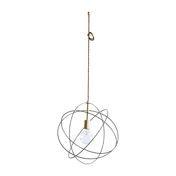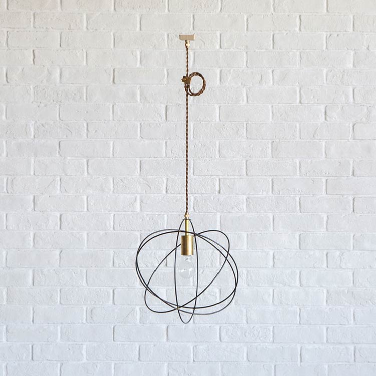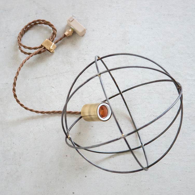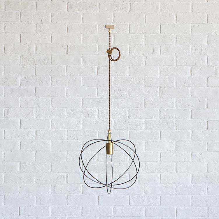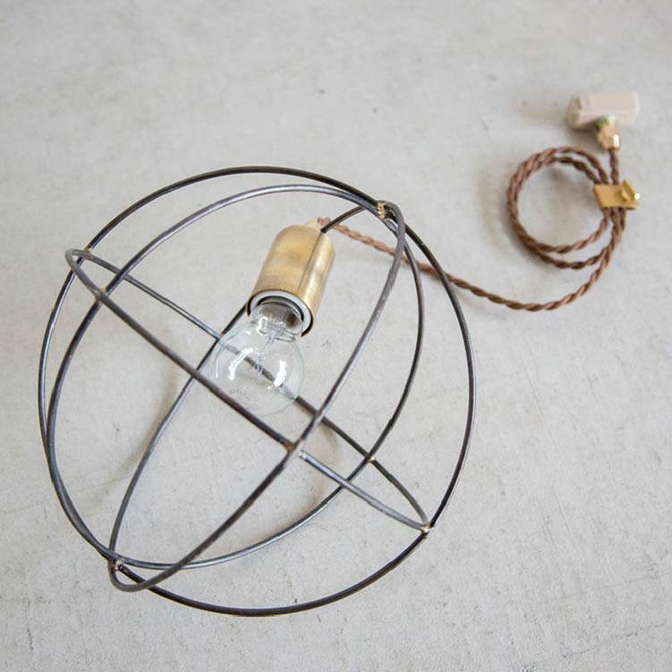 商品情報 | スチールワイヤーで形づくられた球状の輪郭が柔らかい陰影を落とします。真鍮のソケットや留め金具が、さりげなくモダンな雰囲気を醸し出します。 |