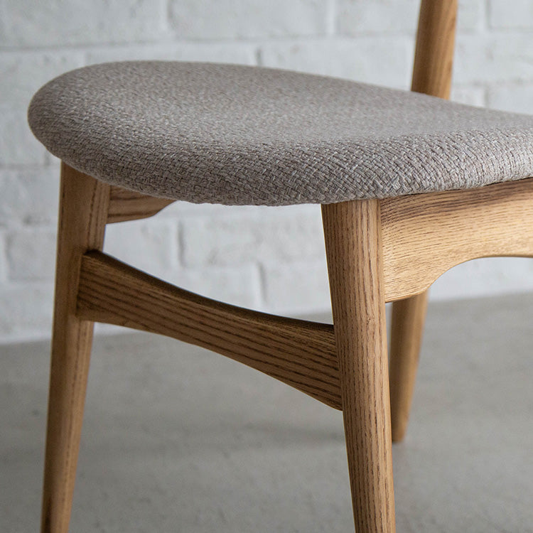 | 商品情報 | 木目が綺麗なアッシュ材を使用したダイニングチェア。 なめらかな曲線を描く背もたれや木部、落ち着きのある色のファブリックを組み合わせ、柔らかい印象に仕上げています。 木の持つ優しさや温もりを感じられるナチュラルや北欧スタイルのコーディネートと相性が楽しめます。 |