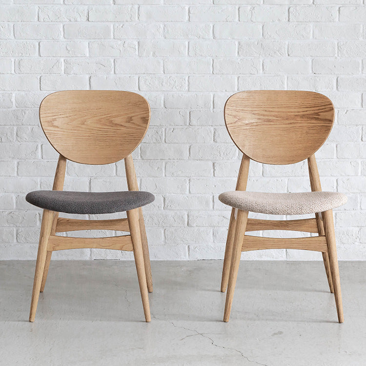 | 商品情報 | 木目が綺麗なアッシュ材を使用したダイニングチェア。 なめらかな曲線を描く背もたれや木部、落ち着きのある色のファブリックを組み合わせ、柔らかい印象に仕上げています。 木の持つ優しさや温もりを感じられるナチュラルや北欧スタイルのコーディネートと相性が楽しめます。 |