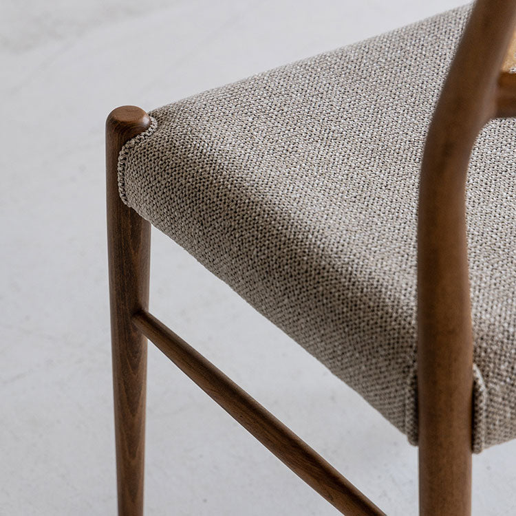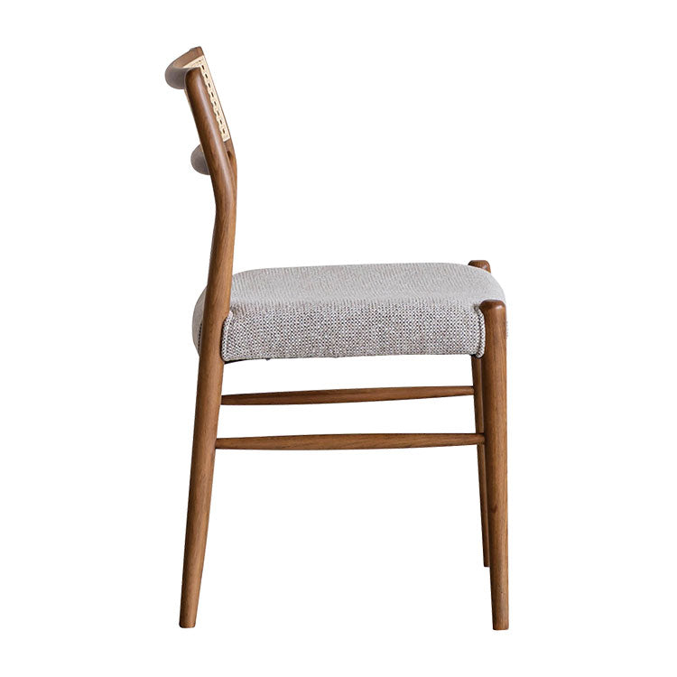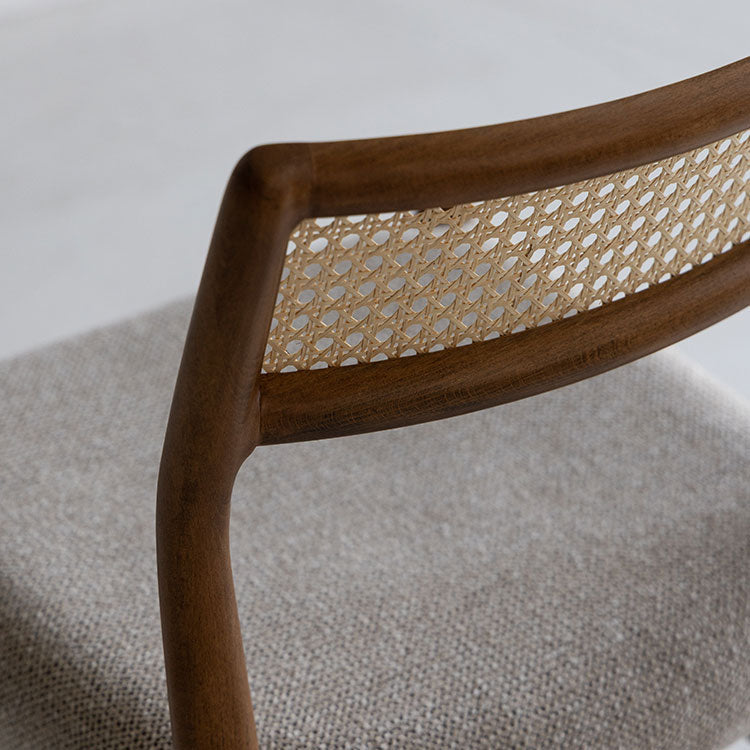 | 商品情報 | 曲線を帯びた滑らかなフレームに、ラタンの背もたれとファブリックの座面がマッチしたダイニングチェア。身体にフィットするようラウンドした背もたれが優しく支えてくれます。木のもつ温もりを活かしたヴィンテージスタイルや北欧スタイルにおすすめのチェアです。 |
