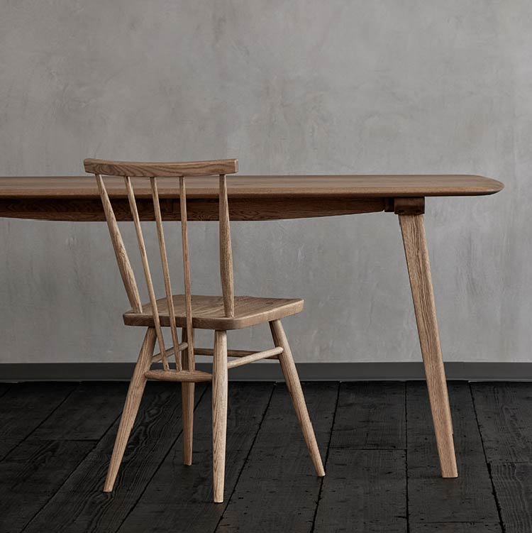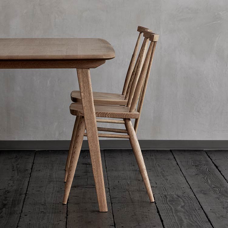 | 商品情報 | 木の持つ柔らかさとシャープさを絶妙なバランスで表現したアンティークチェアをモチーフにした美しいダイニングチェアです。座面には座り心地を高める加工が施されています。 |