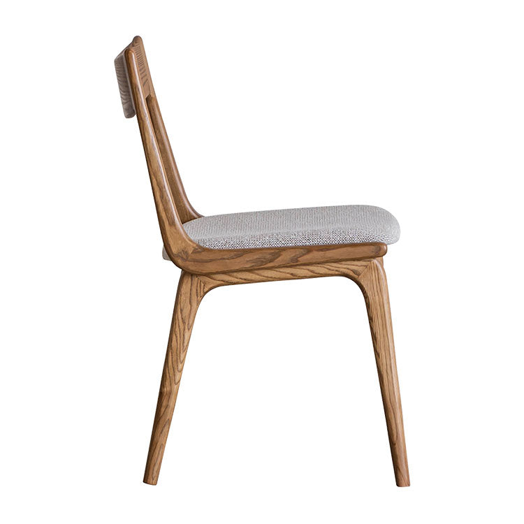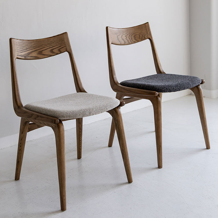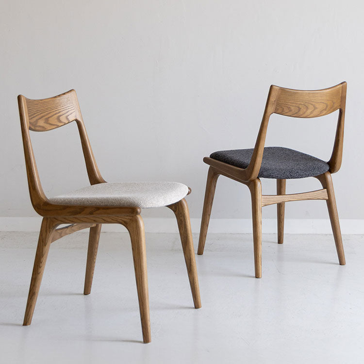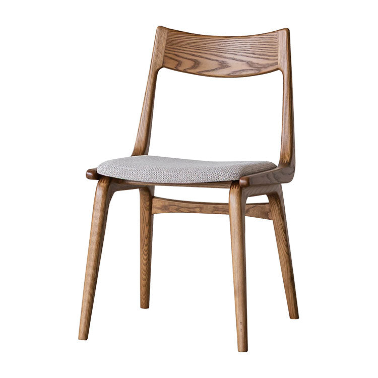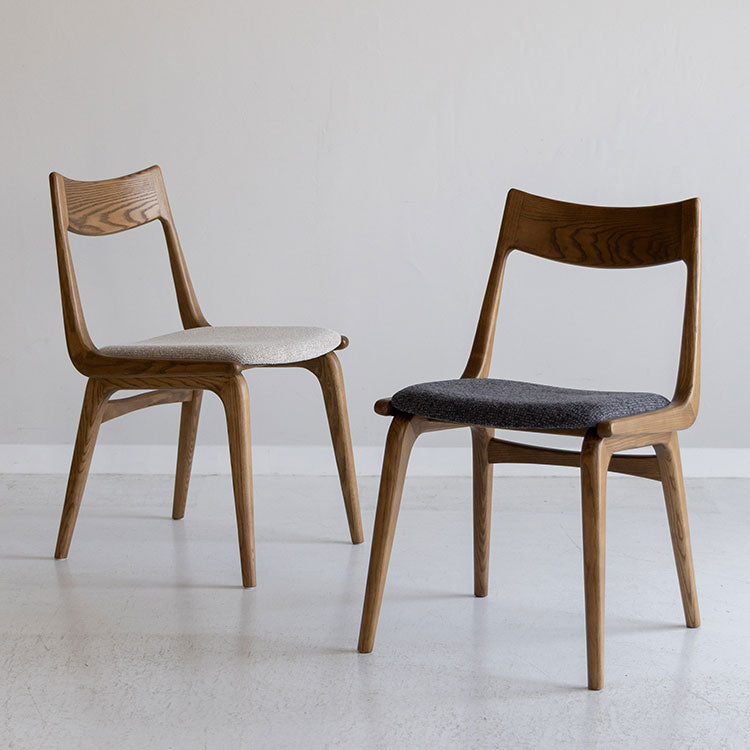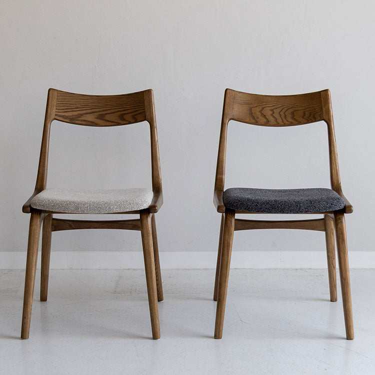 | 商品情報 | 背もたれ、脚フレーム全体に丸みをもたせた柔らかい印象のダイニングチェア。滑らかな曲線の背もたれとファブリックの座面が心地良いホールド感を生み出します。木のもつ温もりを活かしたヴィンテージスタイルや北欧スタイルにおすすめのチェアです。 |