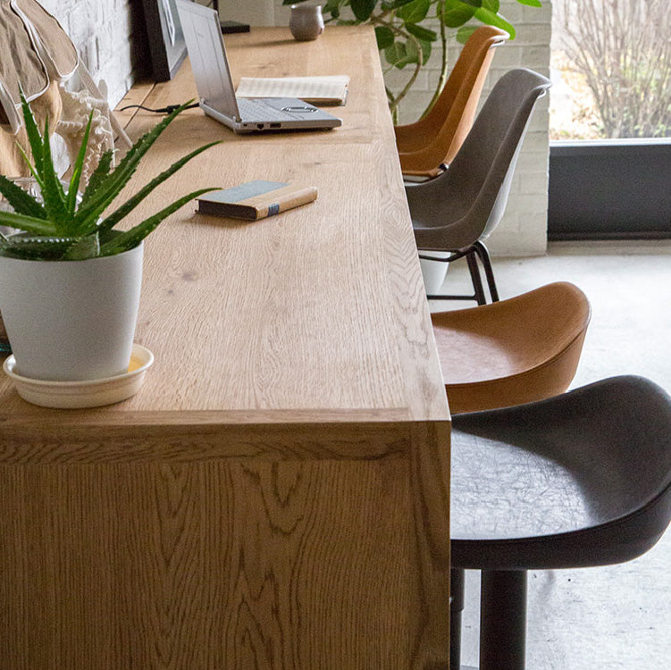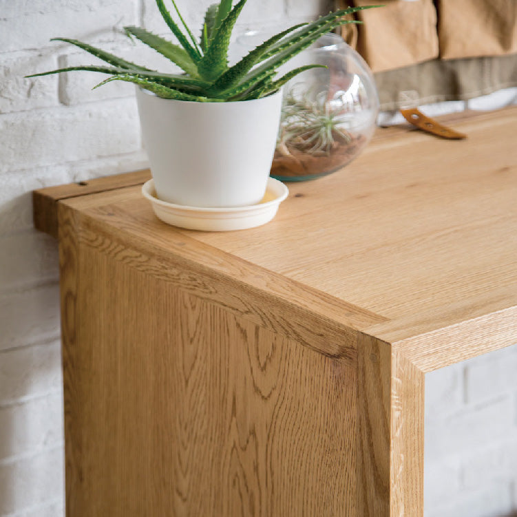 商品情報 | オーク材が持つナチュラルで温もりのある風合いを大切に、シンプ ルで清潔感のあるカウンターテーブル。リビングなどのワークスペー スやサブスペースにあえてカウンターテーブルを使うことで、カフェに いるようなリラックスした雰囲気を楽しむことができます。店舗でも使 いやすいよう、サイズ設計や配線にも配慮したモジュールになって いるので、快適です。 |
