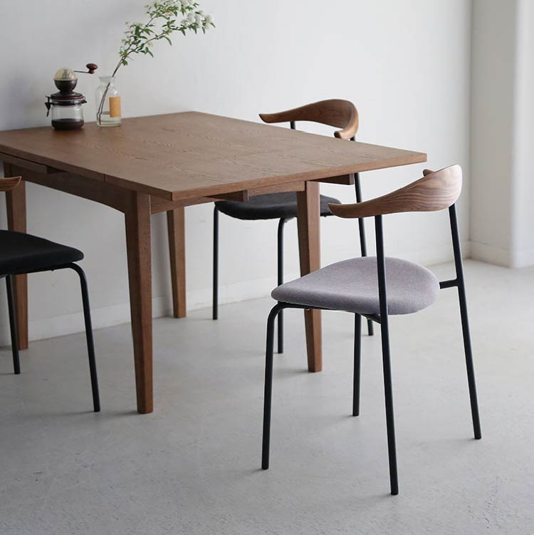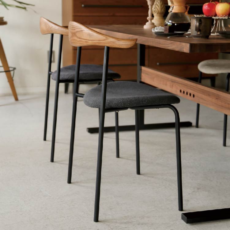 | 商品情報 | 深みのある色合いのアッシュ材とファブリック、スチール脚と異素材を絶妙なバランスで組み合わせました。北欧スタイルのモダンなチェアです。張地は水分や汚れに強い機能性ファブリックで、ダイニングにうれしい仕様です。 |