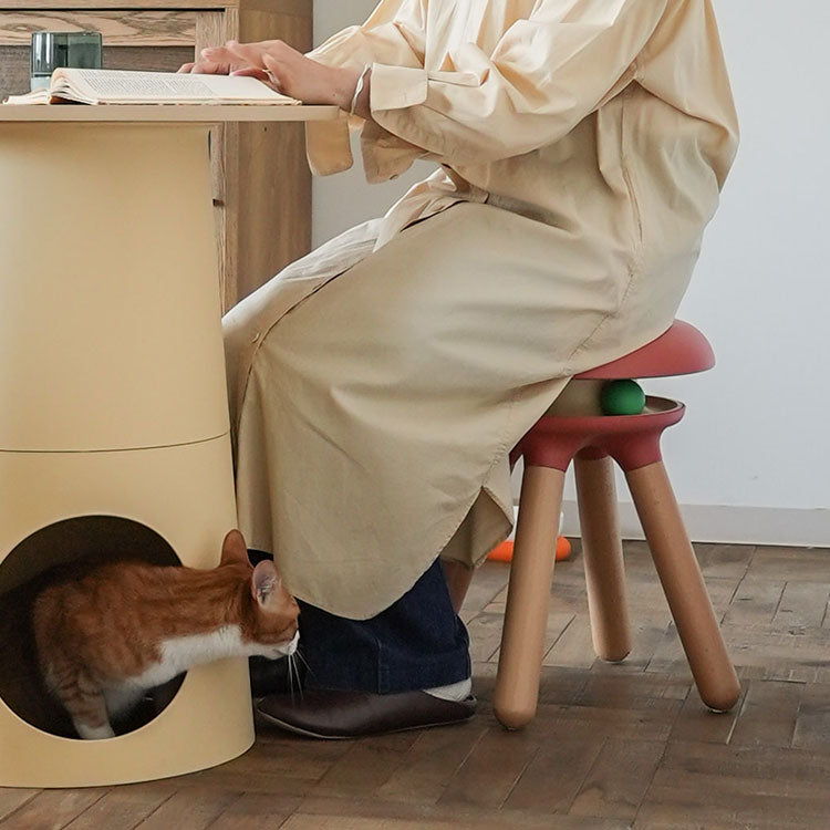 | 商品情報 | ピコスツールは、丸みをある愛らしいフォルムにポップなカラーリングのスツールです。スツールにおもちゃをつけることで、飼い主の側でペットが遊ぶ様子を見守れるように設計しました。座高も450mmあるため、ダイニングテーブルにも合わせてお使いいただけます。 |