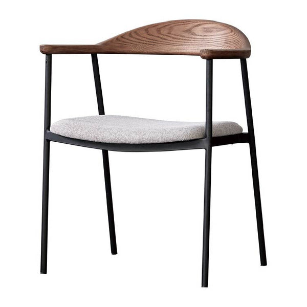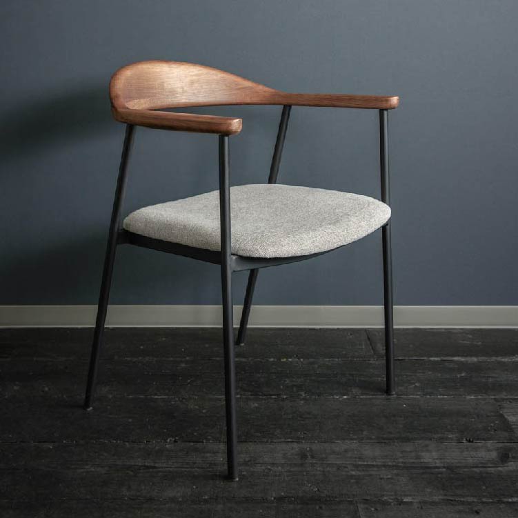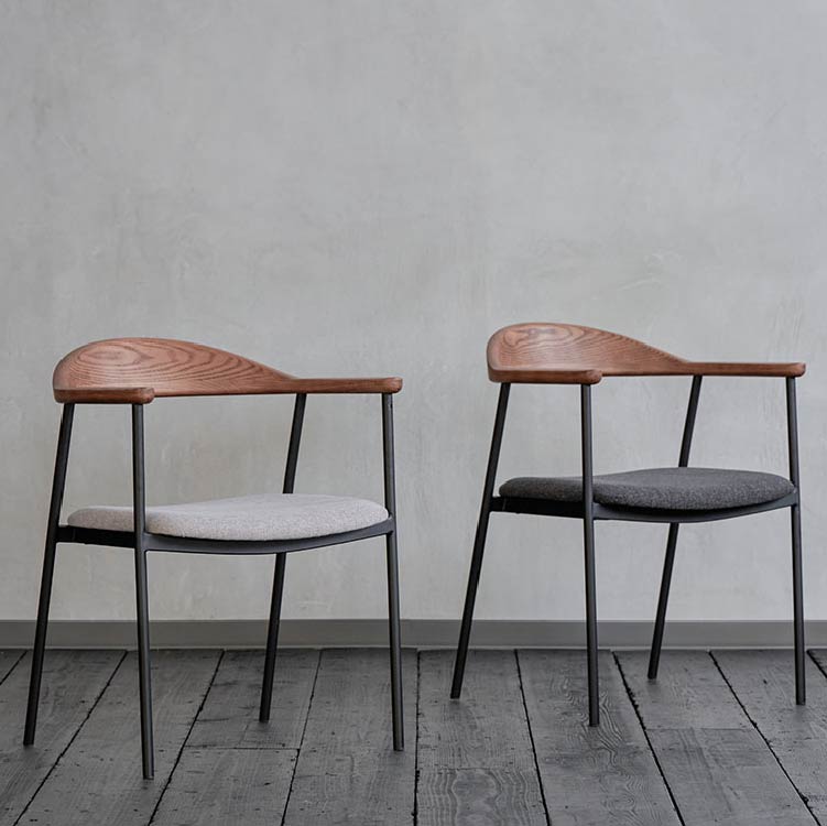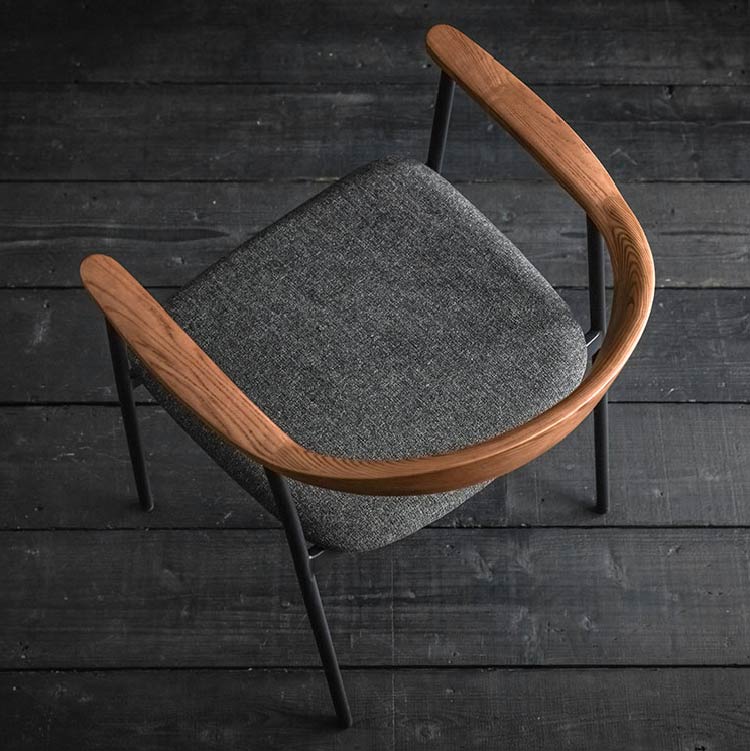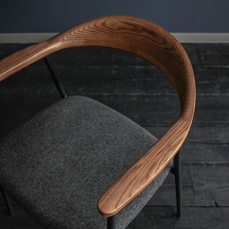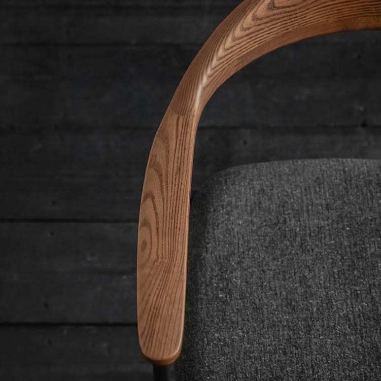 | 商品情報 | 背から肘にかけてなめらかな曲線を描く木部と、スチールフレーム、ファブリックの異素材の組み合わせが個性的なチェア。無駄をそぎ落とし洗練されたフォルムに、優しい天然木の雰囲気が見事に調和しています。 |