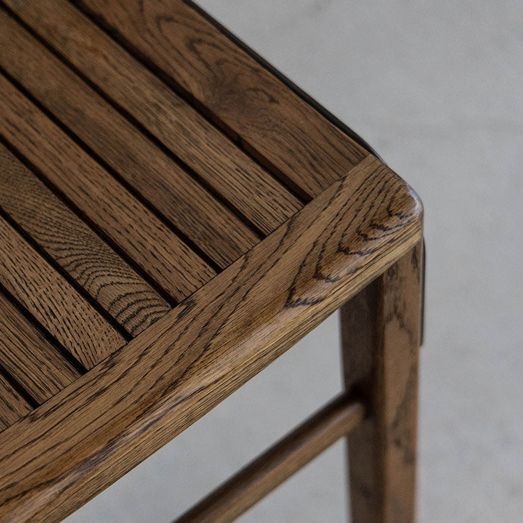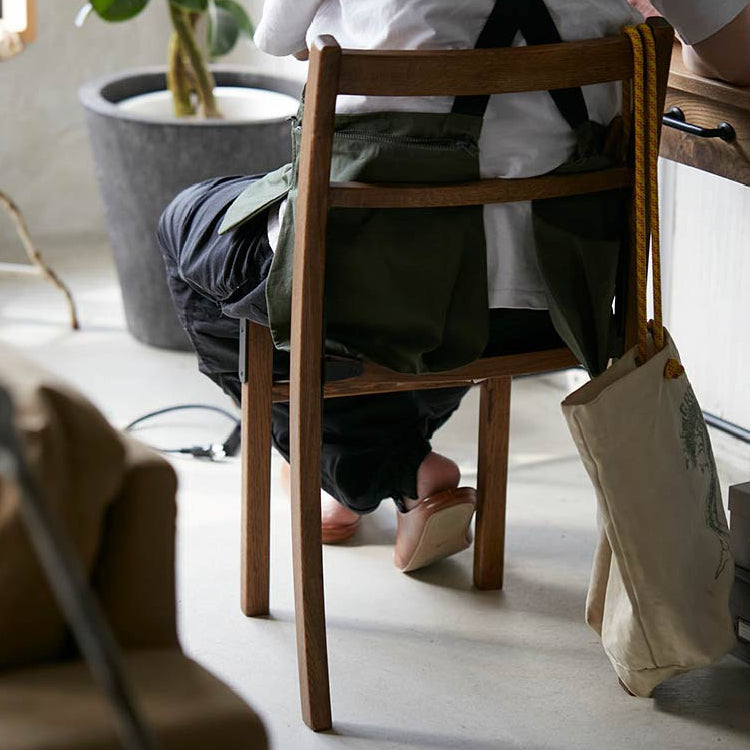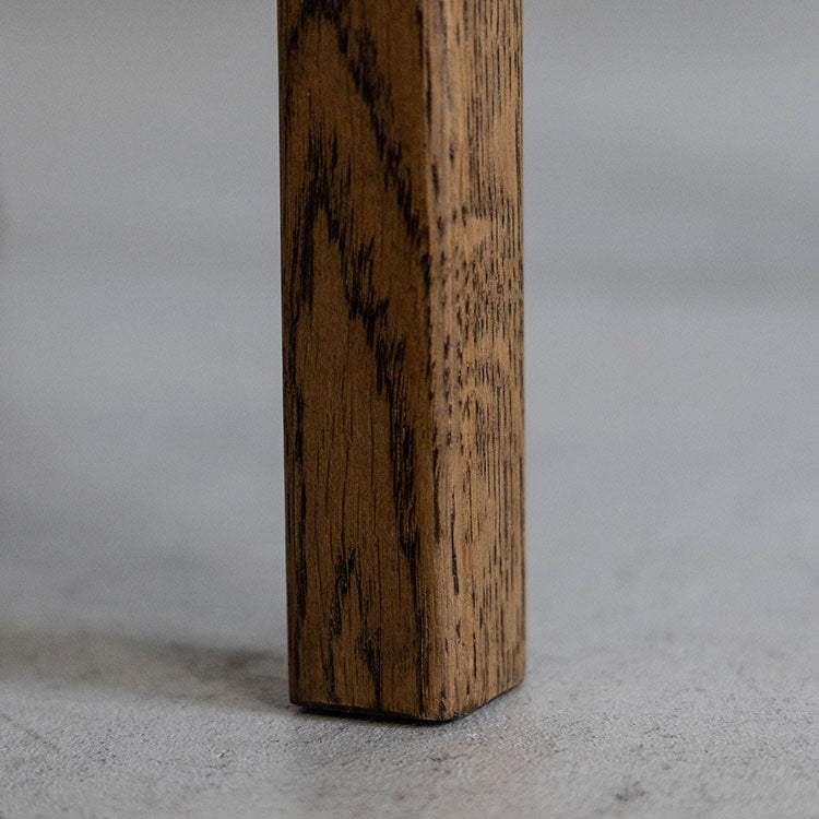 木材の表面に施した、無垢の風合いを活かした仕上げです。表面に硬い塗膜をつくるウレタン塗装とは違い、より無垢の状態に近い木の質感や手触り・風合いを残すことができ、経年変化も楽しめる仕上げです。その反面、使用中にシミや小さな傷や汚れなどがついてしまうことがあります。水拭きやアルコール成分による除菌等は可能な限り行わないでください。変形、塗装の剥離の原因となります。製品ご使用の際は可能な限りコースターやトレーなどをお使いいただき、水滴や食べカスなどが直接付着しないようにしてください。