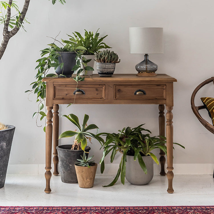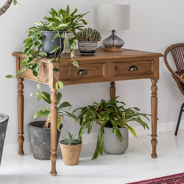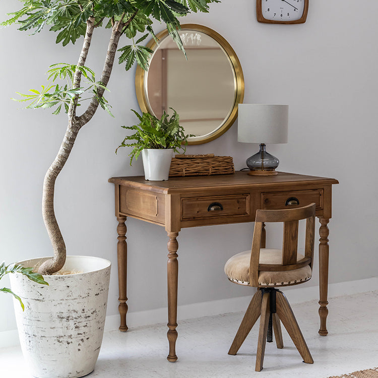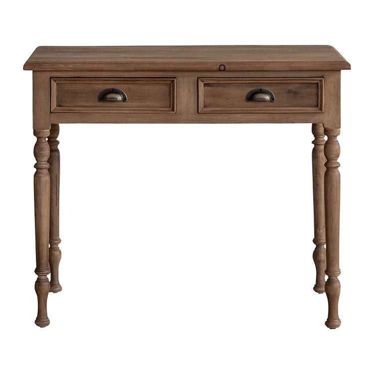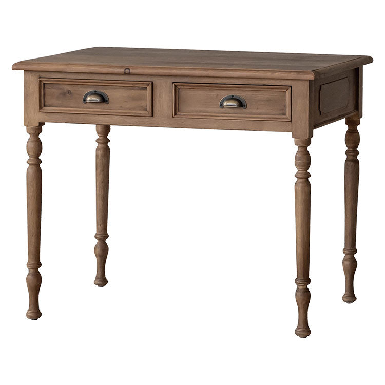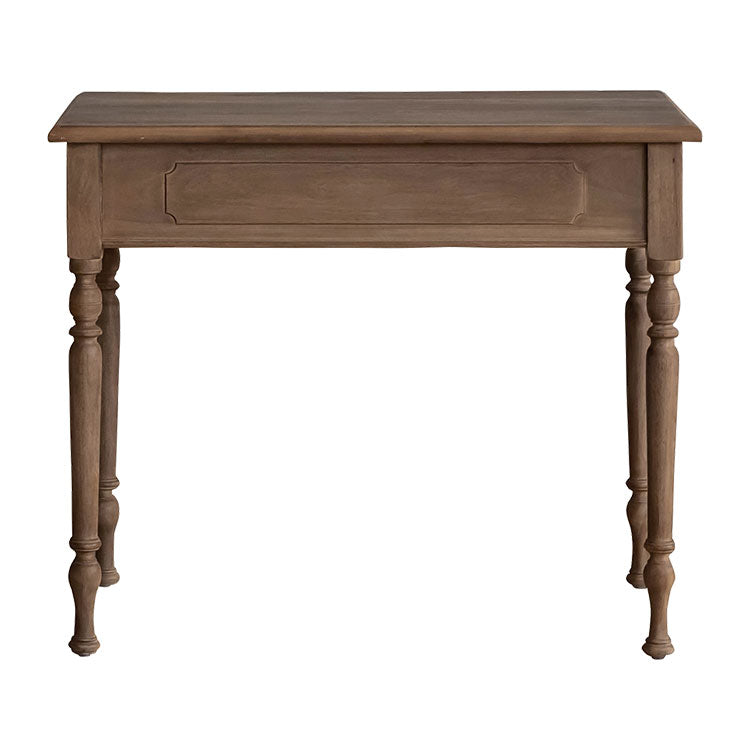| 商品情報 | 装飾的なろくろ脚が目を引く、 アンティーク調のデスク。 側面の掘り込みや取っ手パーツなど、細部までこだわり仕上げています。 引出しは奥行きが深く、 A3サイズもしっかり収納できる大きさです。 書き物をするデスクとしてだけでなく、 化粧台としてもご使用いただけます。 |