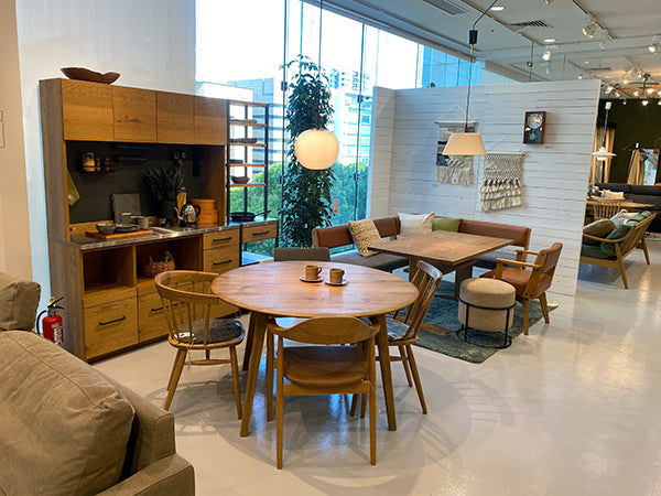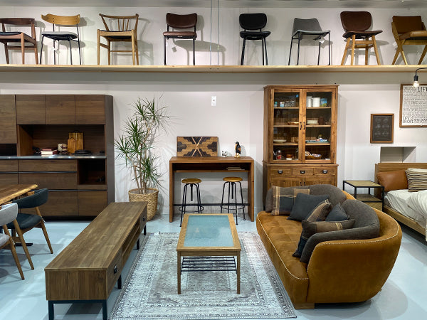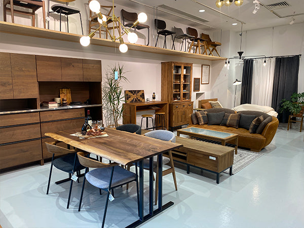 同フロアには複数の家具屋が集結しており、クラッシュゲートはガラス張りで景色を一望できる開放感のある店内です。