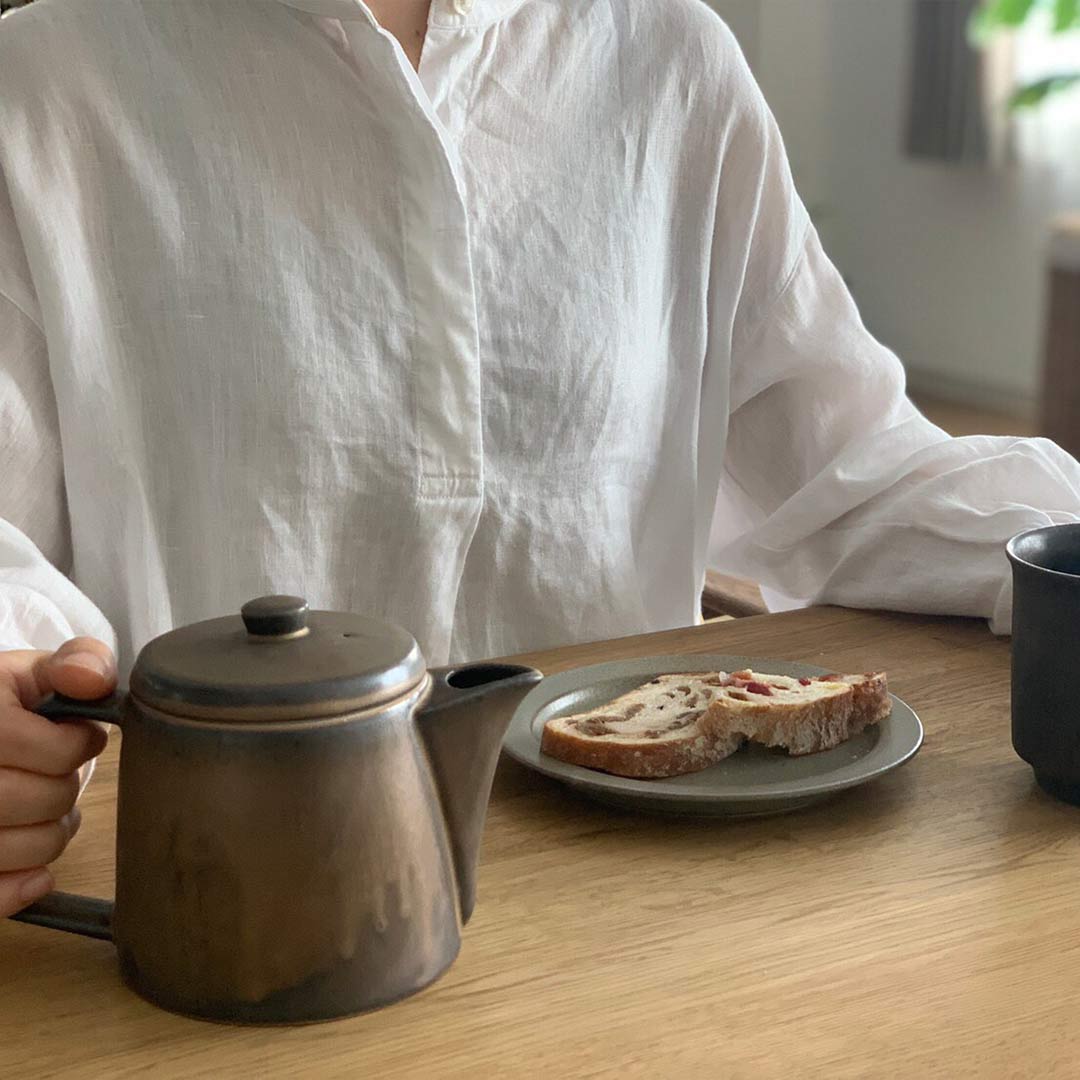 商品情報 洗練された印象のシンプルなディテールを持つポット。 500mlのたっぷり容量でステンレス茶こし付。 見た目だけでなく、使いやすさも兼ね備えています。 紅茶や緑茶を楽しんだり、コーヒーポットとしてもお使い頂けます。 丈夫なストーンウェアを使っているので、実用性も高いポットです。