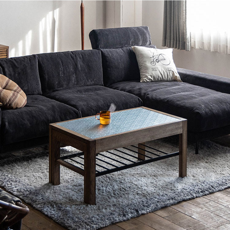 商品情報 サブ天板を引き出して伸張ができるコーヒーテーブルです。 周辺のインテリアや来客などのシチュエーションにあわせて、フレキシブルにテーブル幅が変えられます。 天板には不規則な凹凸が入ったデザインガラスをあしらい、 複雑で美しい透け感を楽しめます。 ちょっとした収納が可能なスチール棚など、 デザイン・機能ともに魅力が詰まったアイテムです。