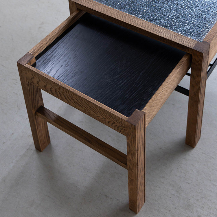 オイル塗装は水分・油分に弱く、長時間放置すると輪ジミやシミの原因になります。木材の表面に施した、無垢の風合いを活かした仕上げです。