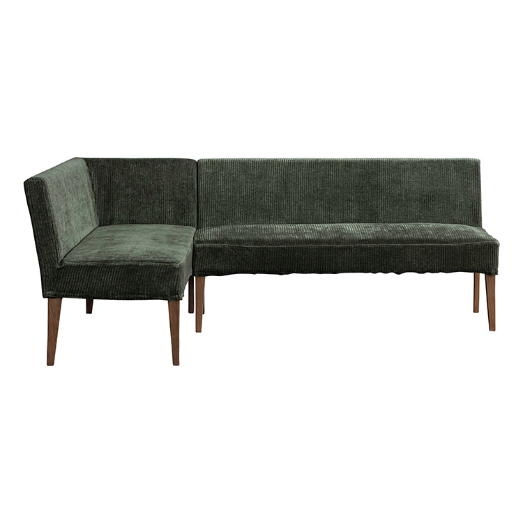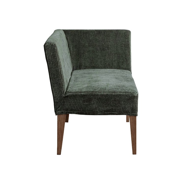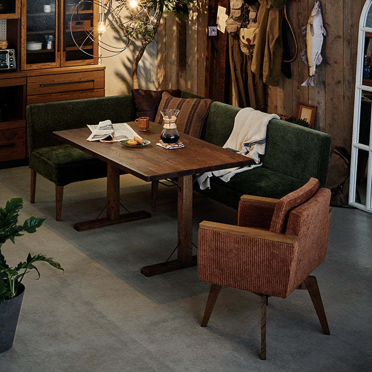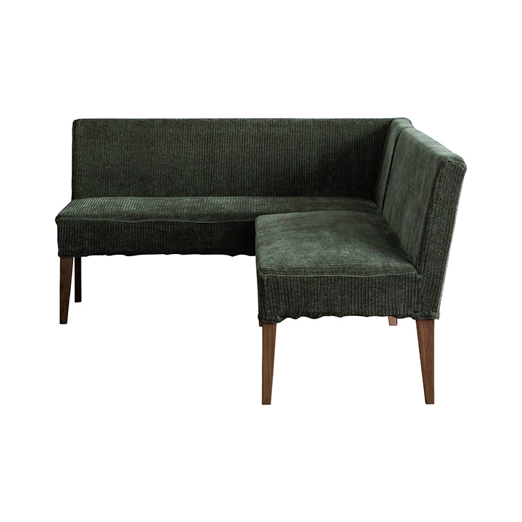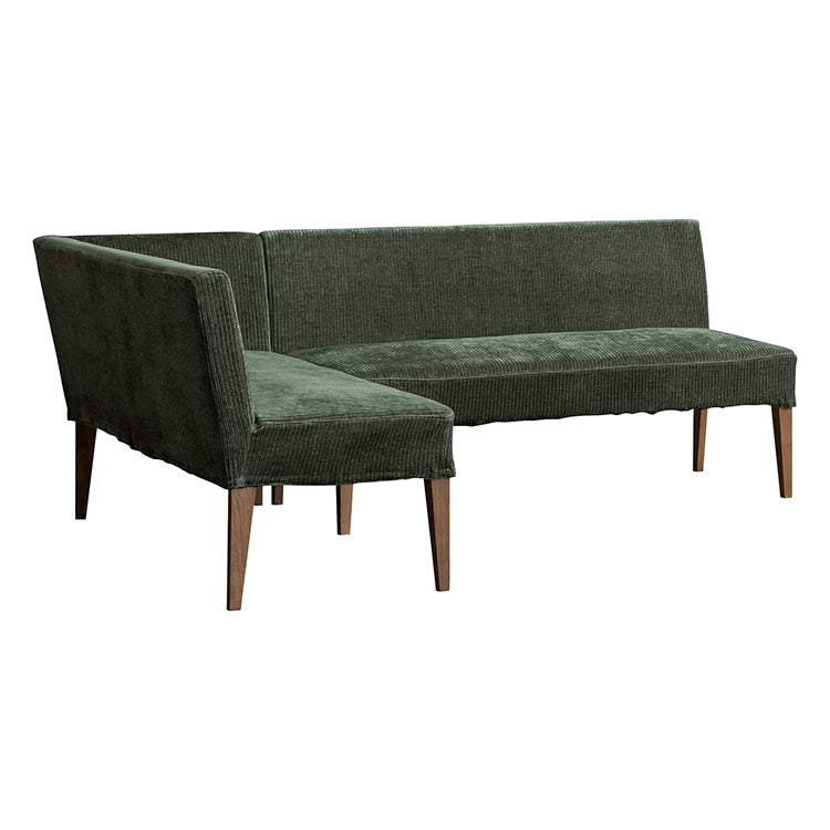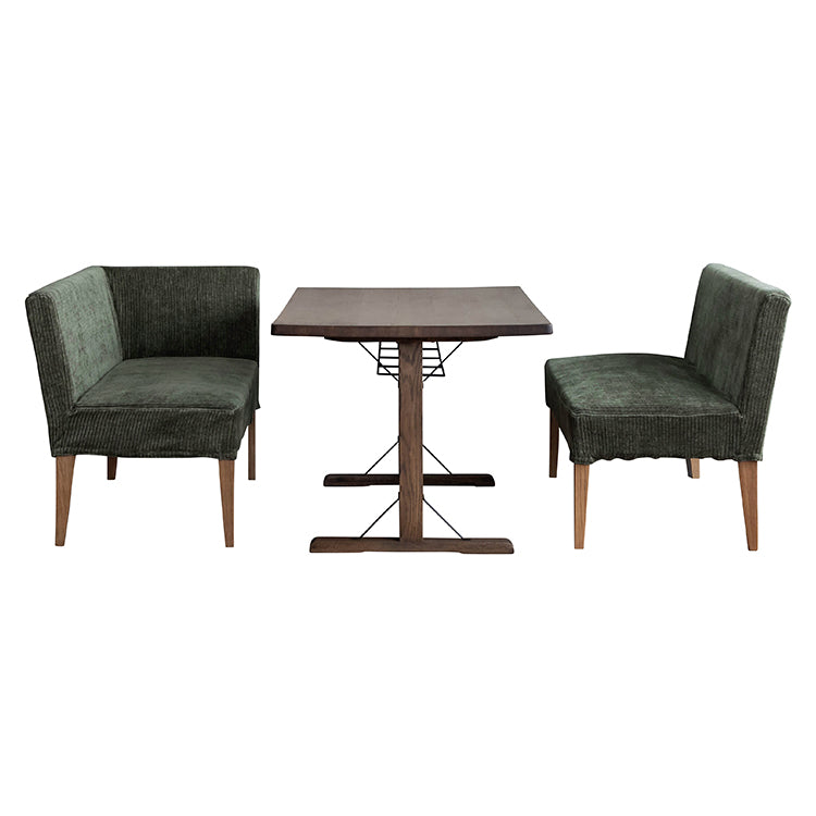 | 商品情報 | 落ち着いたカラーの張地と木脚を組み合わせたヴィンテージシックな雰囲気に、すっきりとしたモダンさもあるデザインのベンチです。 組み合わせ方によってコーナーソファとしてもご使用いただけます。 |